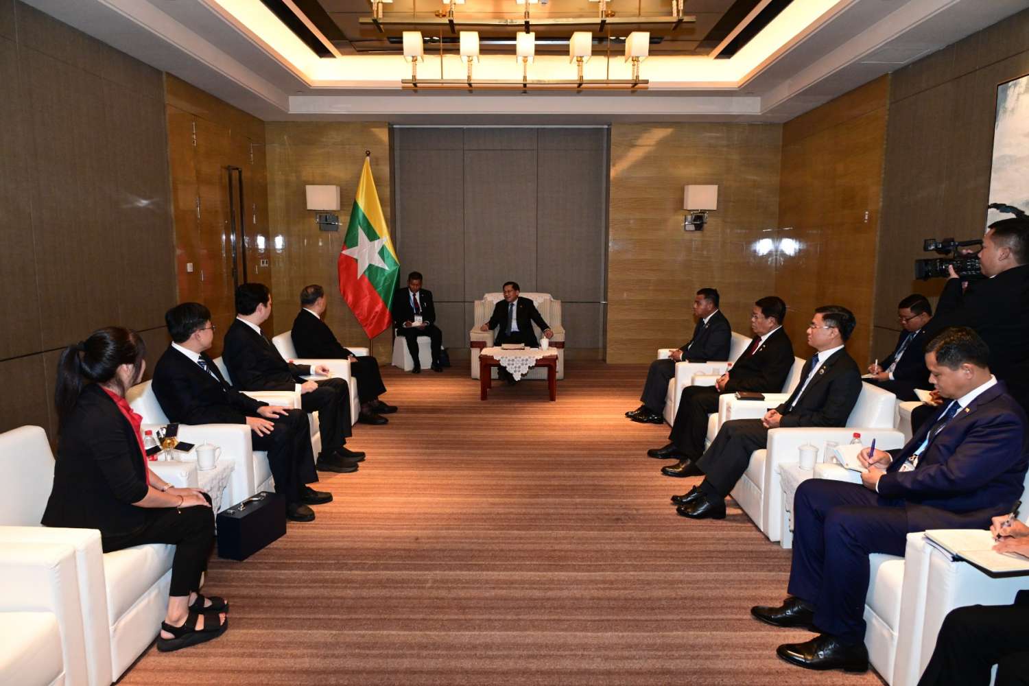 ပြည်ထောင်စုသမ္မတမြန်မာနိုင်ငံတော် ယာယီသမ္မတ နိုင်ငံတော်လုံခြုံရေးနှင့် အေးချမ်းသာယာရေးကော်မရှင် ဥက္ကဋ္ဌ ဗိုလ်ချုပ်မှူးကြီး မင်းအောင်လှိုင် တရုတ်ပြည်သူ့သမ္မတနိုင်ငံ၊ ဝူဟန်တက္ကသိုလ်မှ ဒုတိယအဓိပတိနှင့် တွေ့ဆုံဆွေးနွေး