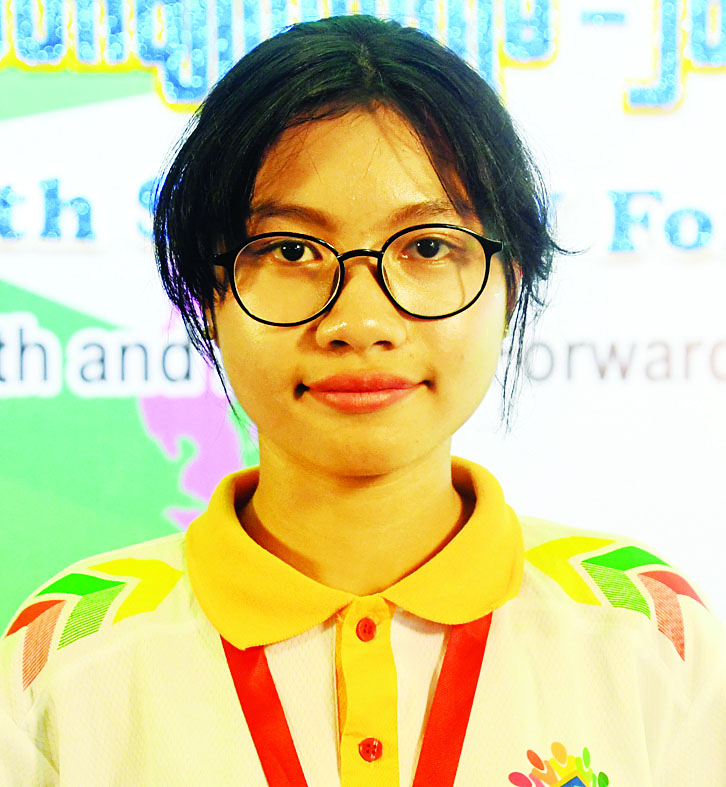 ကျွန်မက အခုဖိုရမ်ကို ရခိုင်ပြည်နယ်ကိုယ်စားပြု တက်ရောက်တာဖြစ်ပါတယ်။ ဒီနေ့ကျင်းပတဲ့ ဖိုရမ်ဟာ တိုင်းရင်းသားတွေကြားမှာ ချစ်ကြည်ရင်းနှီးမှုကို ဖြစ်ပေါ်စေပြီး စည်းလုံးညီညွတ်မှုကို ပိုမိုရရှိစေတယ်လို့ မြင်ပါတယ်။ ပြီးတော့ ဒီဖိုရမ်က နိုင်ငံနဲ့ လူမျိုးအတွက် အကျိုးကျေးဇူးတွေ အများကြီးရရှိအောင် အထောက်အပံ့ဖြစ်စေတယ်လို့ ယုံကြည်ပါတယ်။ ကျွန်မတို့လူငယ်တွေဟာ ဖိုရမ်ကရရှိလာတဲ့ အတွေးအမြင်တွေ၊ အသိပညာတွေကို လက်တွေ့အသုံးချပြီးတော့ ကိုယ့်ဒေသကောင်းကျိုး၊ ကိုယ့်နိုင်ငံကောင်းကျိုးကို ဖော်ဆောင်သွားနိုင်မယ်။ ဒီလိုမျိုးလူငယ်တစ်ဦးဖြစ်စေဖို့ အကောင်းဆုံးကြိုးစားသွားပါ့မယ်။