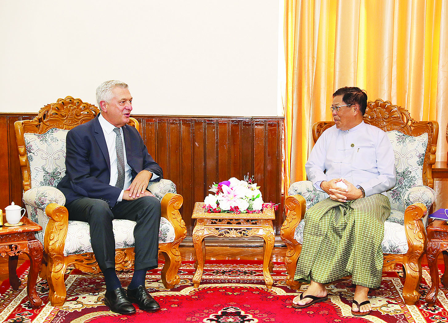 နိုင်ငံခြားရေးဝန်ကြီးဌာန ပြည်ထောင်စုဝန်ကြီး ဦးသန်းဆွေသည် ကုလသမဂ္ဂဒုက္ခသည်များဆိုင်ရာ မဟာမင်းကြီး Mr. Filippo Grandi အား ယနေ့နံနက်ပိုင်းတွင် နေပြည်တော်ရှိ နိုင်ငံခြားရေးဝန်ကြီးဌာန၌ လက်ခံတွေ့ဆုံသည်။