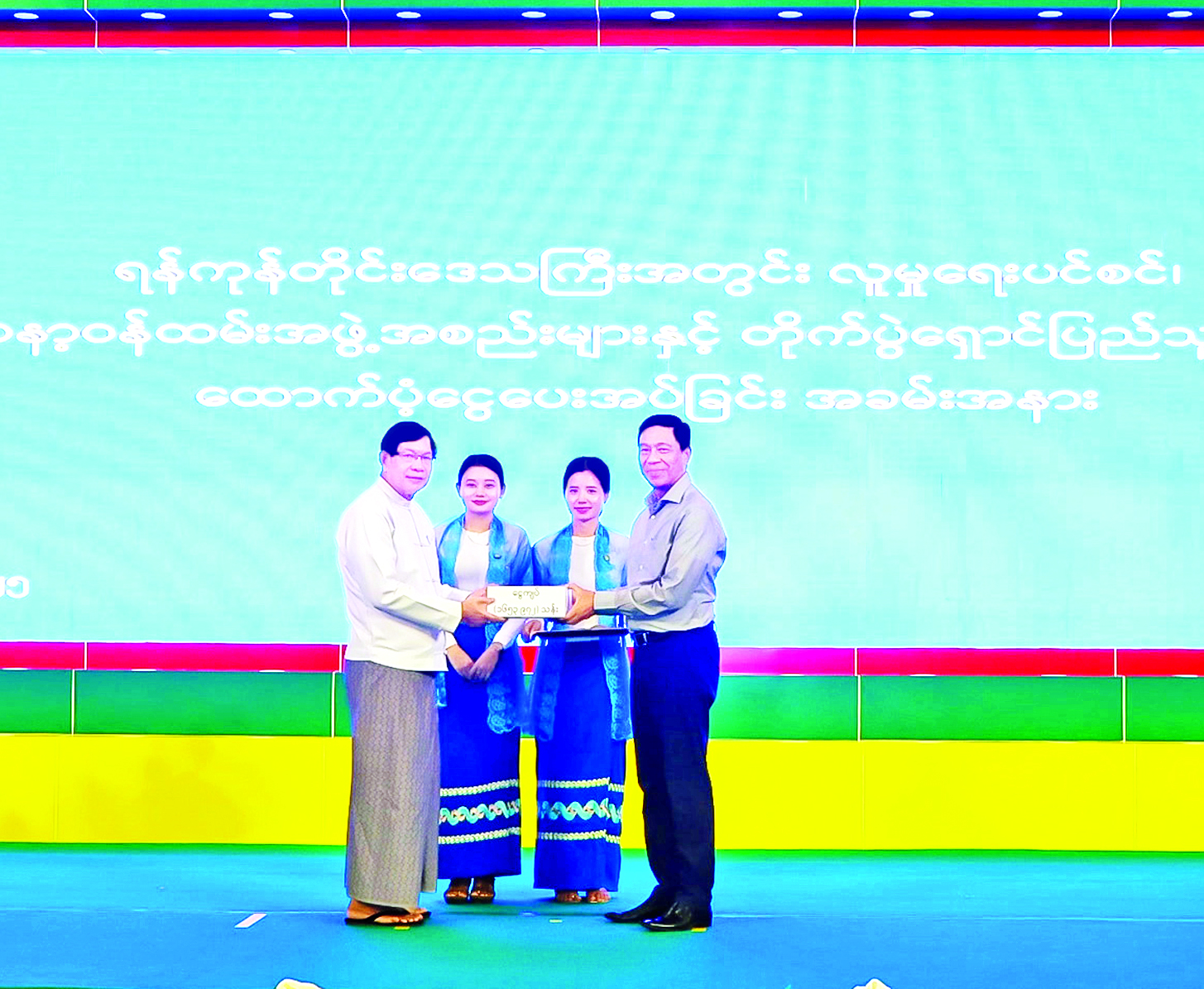 ၂၀၂၅-၂၀၂၆ ဘဏ္ဍာနှစ်အတွက် ရန်ကုန်တိုင်းဒေသကြီးအတွင်းရှိ အသက် ၈၅ နှစ်နှင့်အထက် သက်ကြီးပုဂ္ဂိုလ်များ လူမှုရေးပင်စင်ထောက်ပံ့ခြင်း၊ စေတနာ့ဝန်ထမ်းအဖွဲ့အစည်းများနှင့် ယာယီနေရပ်စွန့်ခွာပြည်သူများအတွက် ထောက်ပံ့ကြေးပေးအပ်ခြင်းအခမ်းအနားကို ယနေ့နံနက်ပိုင်းတွင် ရန်ကုန်တိုင်းဒေသကြီးအစိုးရအဖွဲ့ရုံး မင်္ဂလာခန်းမ၌ ကျင်းပသည်။