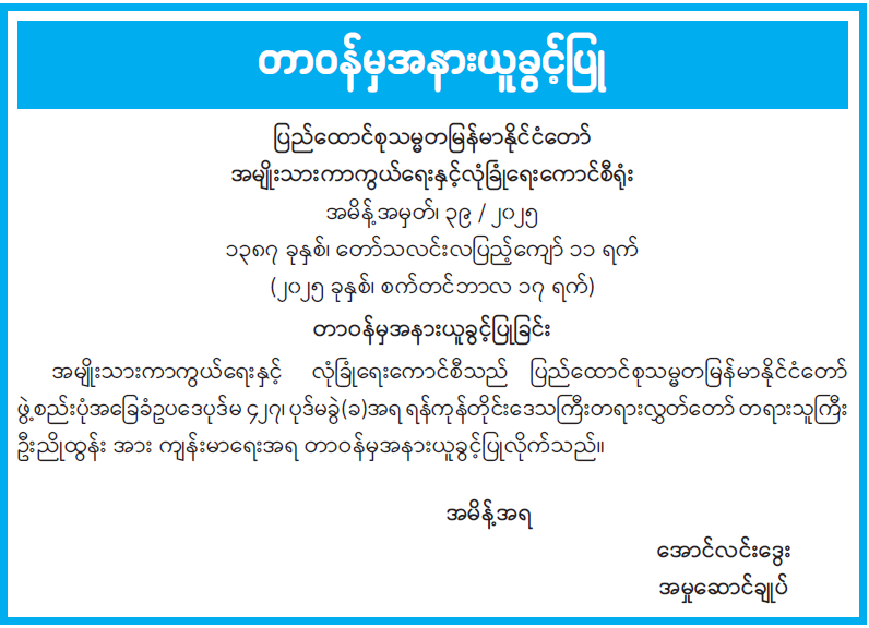 ဝန်ကြီးဌာန ကြေညာချက်များ