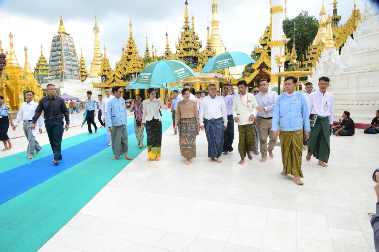 ကာကွယ်ရေးဦးစီးချုပ်(လေ) ဗိုလ်ချုပ်ကြီးထွန်းအောင်၏ ဖိတ်ကြားချက်အရ မြန်မာ-ထိုင်းနှစ်နိုင်ငံလေတပ်များအကြား ချစ်ကြည်ရင်းနှီးမှု ပိုမိုရရှိစေရန်အတွက် Bilateral Engagement Activities ဆိုင်ရာလှုပ်ရှားမှုများဆောင်ရွက်ရန် မြန်မာနိုင်ငံသို့ရောက်ရှိနေသော ထိုင်းဘုရင့်လေတပ်ဦးစီးချုပ် Air Chief Marshal Punpakdee Pattanakul နှင့် ဇနီး ဦးဆောင်သည့် ကိုယ်စားလှယ်အဖွဲ့သည် ယနေ့နံနက်ပိုင်းတွင် ရန်ကုန်မြို့ရှိ ကမ္ဘာအေးဘုရားနှင့် ရွှေတိဂုံစေတီတော်မြတ်ကြီးသို့ သွားရောက်ဖူးမြော်ကြည်ညိုခဲ့ကြပြီး ဗိုလ်ချုပ်အောင်ဆန်းဈေးသို့ သွားရောက်လည်ပတ်ကြည့်ရှုခဲ့ကြသည်။