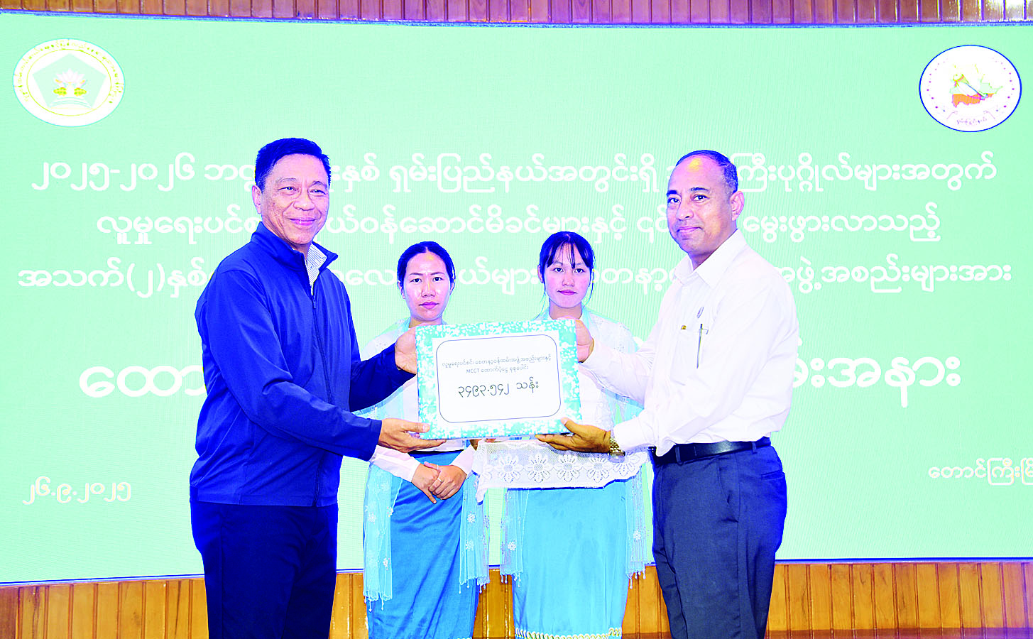 ယင်းနောက် ရှမ်းပြည်နယ်အတွင်းရှိ အသက် ၈၅ နှစ်နှင့်အထက် လူမှုရေးပင်စင်အကျိုးခံစားခွင့်ရှိသူ သက်ကြီးပုဂ္ဂိုလ် ၅၀၂၇ ဦးအတွက် လူမှုရေးပင်စင် ထောက်ပံ့ကြေး ငွေကျပ် ၂၉၃ ဒသမ ၁၃၀ သန်းကို ပြည်ထောင်စုဝန်ကြီးကလည်းကောင်း၊ ကိုယ်ဝန်ဆောင်မိခင် ၁၀၆၄၂ ဦးနှင့် ၎င်းတို့ မှမွေးဖွားလာသော အသက် နှစ်နှစ်အောက် ကလေး ၁၈၄၈၄ ဦး စုစုပေါင်း ၂၉၁၂၆ ဦးအတွက် ငွေကျပ် ၂၇၁၅ ဒသမ ၇၀၅ သန်းနှင့် စေတနာ့ဝန်ထမ်းအဖွဲ့အစည်းများနှင့် ကိုယ့်အားကိုယ်ကိုး မူလတန်းကြိုကျောင်းတို့အတွက် ထောက်ပံ့ကြေးငွေကျပ် ၄၈၄ ဒသမ ၇၀၇ သန်းကို ပြည်နယ် ဝန်ကြီးချုပ်ကလည်းကောင်း ပေးအပ်ခဲ့ကြပြီး စေတနာ့ဝန်ထမ်းအဖွဲ့အစည်းများမှ ကိုယ်စားလှယ်တစ်ဦးက ကျေးဇူးတင်စကား ပြောကြားသည်။