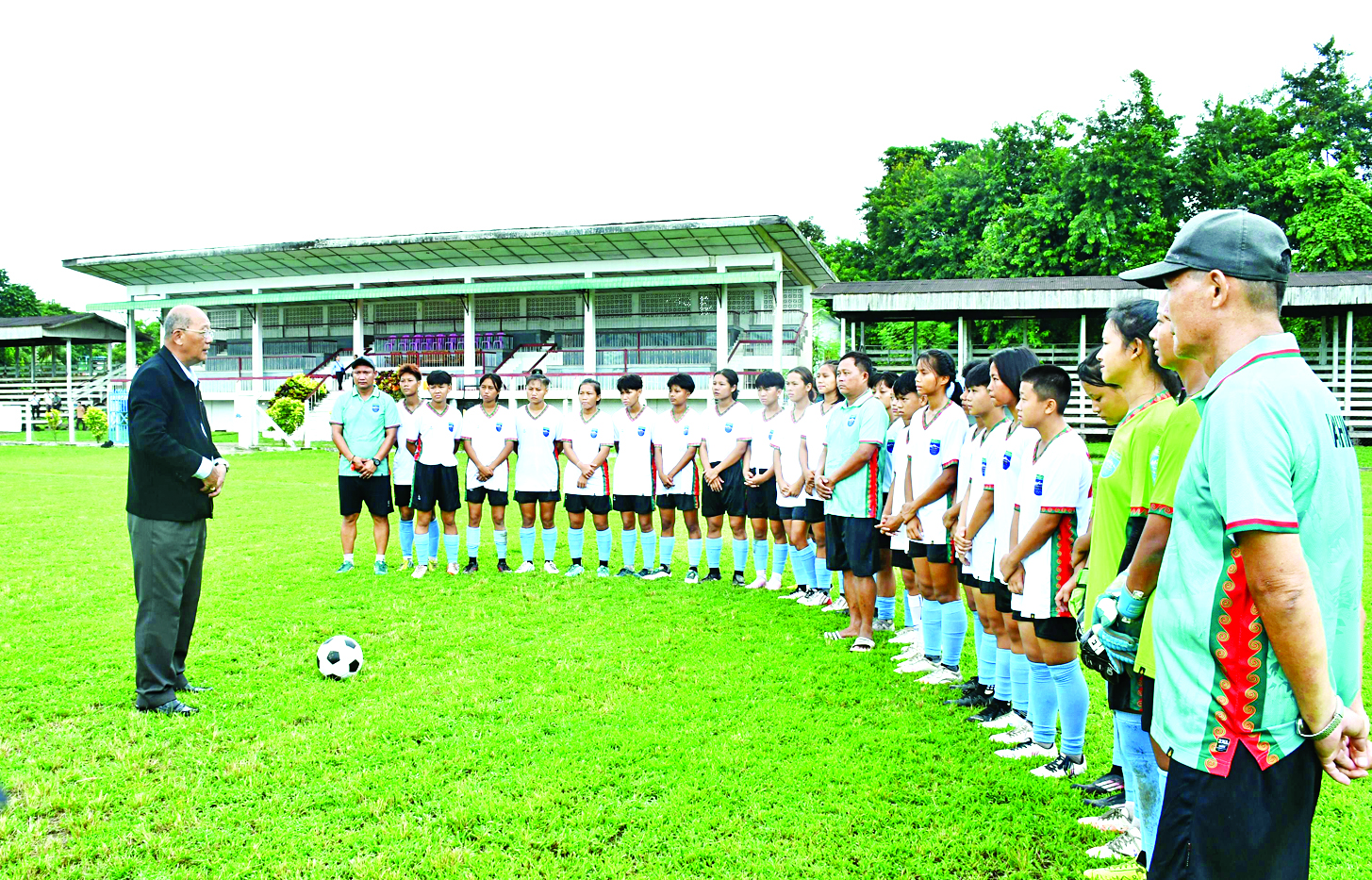 ပြည်ထောင်စုဝန်ကြီး Jeng Phang နော်တောင် ကချင်ပြည်နယ်ရှိ အားကစားအဆောက် အအုံများနှင့် အသက်(၂၅)နှစ်အောက်(အမျိုးသမီး) ဘောလုံးအသင်း လေ့ကျင့်မှုကို ကြည့်ရှုစစ်ဆေး
