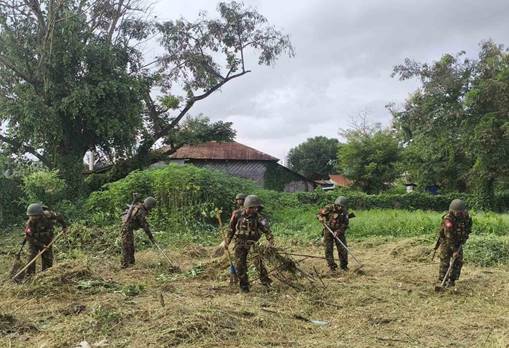 လုံခြုံရေးတပ်ဖွဲ့ဝင်များက ကျောက်မဲမြို့ အမှတ်(၁)အခြေခံပညာအထက်တန်းကျောင်း၌ သန့်ရှင်းရေးလုပ်ငန်းများဆောင်ရွက်၊ ဒေသခံတိုင်းရင်းသားပြည်သူများအတွက် ဆန်၊ ဆီနှင့် စားသောက်ကုန်များ ထပ်မံရောက်ရှိ