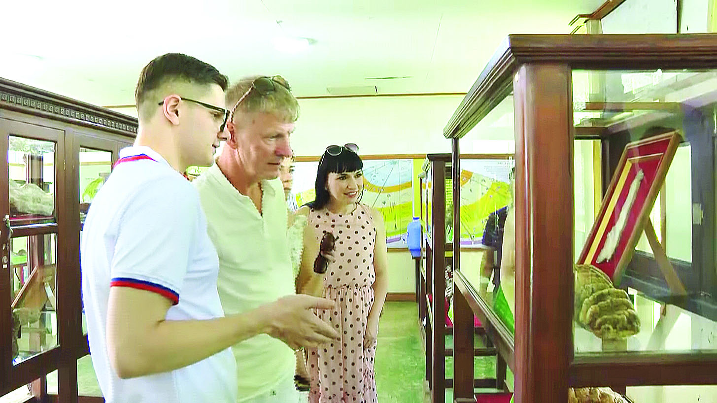 အဆိုပါ ဖျော်ဖြေရေးအဖွဲ့တွင် ဘယ်လာရုစ် တေးဂီတပညာရှင်နှင့် တေးရေး/ တေးဆို Mr. Vladi-mir Sukolinsky ၊ အဆိုရှင်များ ဖြစ်ကြသည့် Ms. Nadezhda Bryleva နှင့် Ms. Anzhelika Zaitseva၊ မန်နေဂျာ Mr. Danila Kisiev တို့ လေးဦးပါဝင်ပြီး မြန်မာ-ရုရှားချစ်ကြည်ရေးအသင်းဒုတိယဥက္ကဋ္ဌ မစ္စတာ အယ်လ်ဇန္ဒား၊ ရုရှားသံရုံးမှ ကိုယ်စားလှယ် Mr. Andrei Tretiakov နှင့် MRTV မှ တာဝန်ရှိသူများနှင့်အတူ ယနေ့နံနက်ပိုင်းတွင် ပြင်ဦးလွင်မြို့ အမျိုးသားကန်တော်ကြီးဥယျာဉ်ရှိ ကျောက် ဖြစ်ရုပ်ကြွင်းပြတိုက်၊ အင်ကြင်းကျောက်ပြတိုက်၊ ရွှံ့ညွန်တော၊ ဝါးပိုးဝါးပင်များ ထိန်းသိမ်းထားရှိမှု၊ လိပ်ပြာပြတိုက်၊ မြန်မာသစ်ခွ မျိုးရင်းပြကွက်များအား စိတ်ပါဝင်စားစွာဖြင့် အသေးစိတ်ကြည့်ရှုလေ့လာကြသည်။