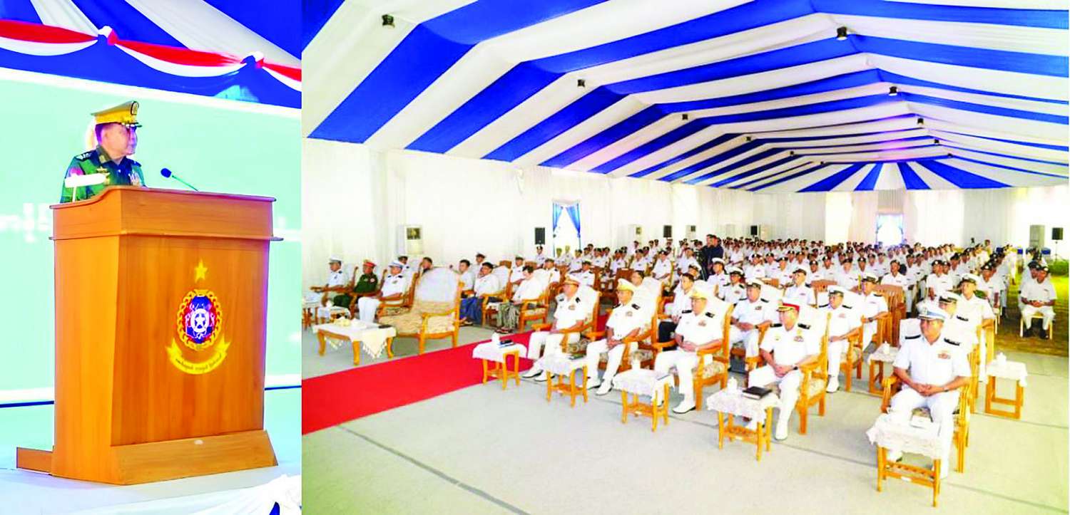 ကမ်းခြေစောင့် တပ်ဖွဲ့၏လုပ်ငန်းတာဝန်များ ထမ်းဆောင်ရာတွင် ဥပဒေကြောင်းအရခိုင်ခိုင် မာမာဆောင်ရွက်နိုင်ရေး မြန်မာနိုင်ငံကမ်းခြေစောင့်တပ်ဖွဲ့ဥပဒေကို ၂၀၂၅ ခုနှစ်၊ ဇူလိုင် ၁၇ ရက် တွင် နိုင်ငံတော်အစိုးရက အတည်ပြု ပြဋ္ဌာန်းပေးခဲ့ပြီးဖြစ်ကြောင်း၊ မြန်မာ့ပင်လယ်ပြင်အတွင်း တရား ဥပဒေစိုးမိုးရေး လုပ်ငန်းများ ဆောင်ရွက်ရာတွင်ထိရောက်မှု၊ တရားမျှတမှု၊ လုံခြုံမှု၊ အကာအကွယ်ပေးမှုနှင့် လက်တွေ့ကျင့်သုံးနိုင်မှုများ ဆောင်ရွက်နိုင်ရေး မြန်မာနိုင်ငံကမ်းခြေစောင့်တပ်ဖွဲ့ဥပဒေတွင် ပြဋ္ဌာန်းထားရှိကြောင်း၊ မြန်မာနိုင်ငံကမ်းခြေစောင့်တပ်ဖွဲ့ဥပဒေနှင့်တည်ဆဲ ရေကြောင်းဥပဒေများအတိုင်း စည်းမျဉ်းစည်းကမ်းများနှင့်အညီ လိုက်နာဆောင်ရွက်ပြီး နိုင်ငံတော်၏ရေကြောင်းအကျိုးစီးပွားများ ပိုမိုဖွံ့ဖြိုးလာစေရန် ဆောင်ရွက်သွားရမည်ဖြစ်ကြောင်း၊ မြန်မာနိင်ငံကမ်းခြေစောင့်တပ်ဖွဲ့ဥပဒေနှင့် ဆက်စပ်ကျင့်သုံးရမည့် ရေကြောင်းဆိုင်ရာဥပဒေများကိုလည်း စဉ်ဆက်မပြတ်လေ့လာ၍ နိုင်ငံတော်၏ရေကြောင်းအကျိုးစီးပွားများကို ကာကွယ်စောင့် ရှောက်သွားရမည်ဖြစ်ကြောင်း ပြောကြားသည်။