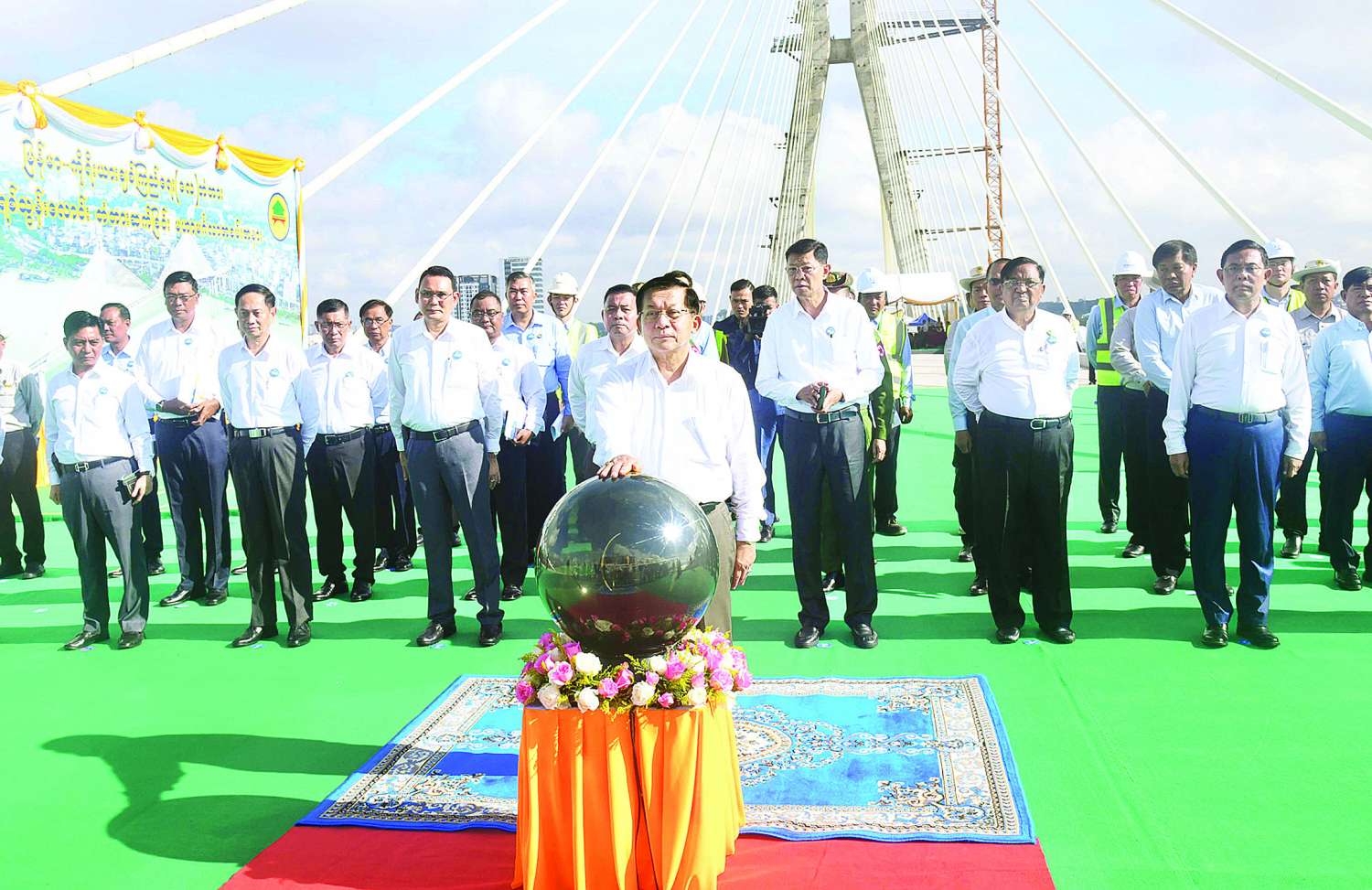 ပြည်ထောင်စုသမ္မတမြန်မာနိုင်ငံတော် ယာယီသမ္မတ နိုင်ငံတော်လုံခြုံရေးနှင့် အေးချမ်းသာယာရေးကော်မရှင် ဥက္ကဋ္ဌ ဗိုလ်ချုပ်မှူးကြီး မင်းအောင်လှိုင် မြန်မာ-ကိုရီးယား နှစ်နိုင်ငံချစ်ကြည်ရေး(ဒလ)တံတား ကွန်ကရစ်သွန်းလောင်းတံတားဆက်ခြင်း မဟာမင်္ဂလာအခမ်းအနားသို့ တက်ရောက်ချီးမြှင့်