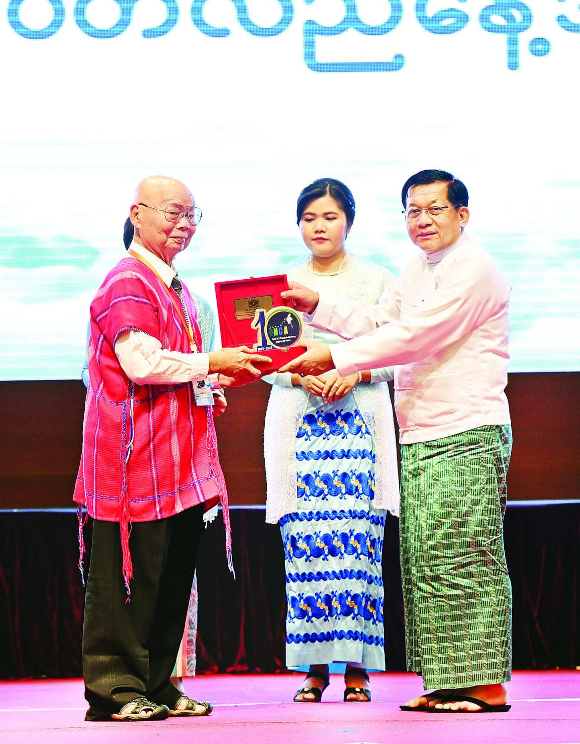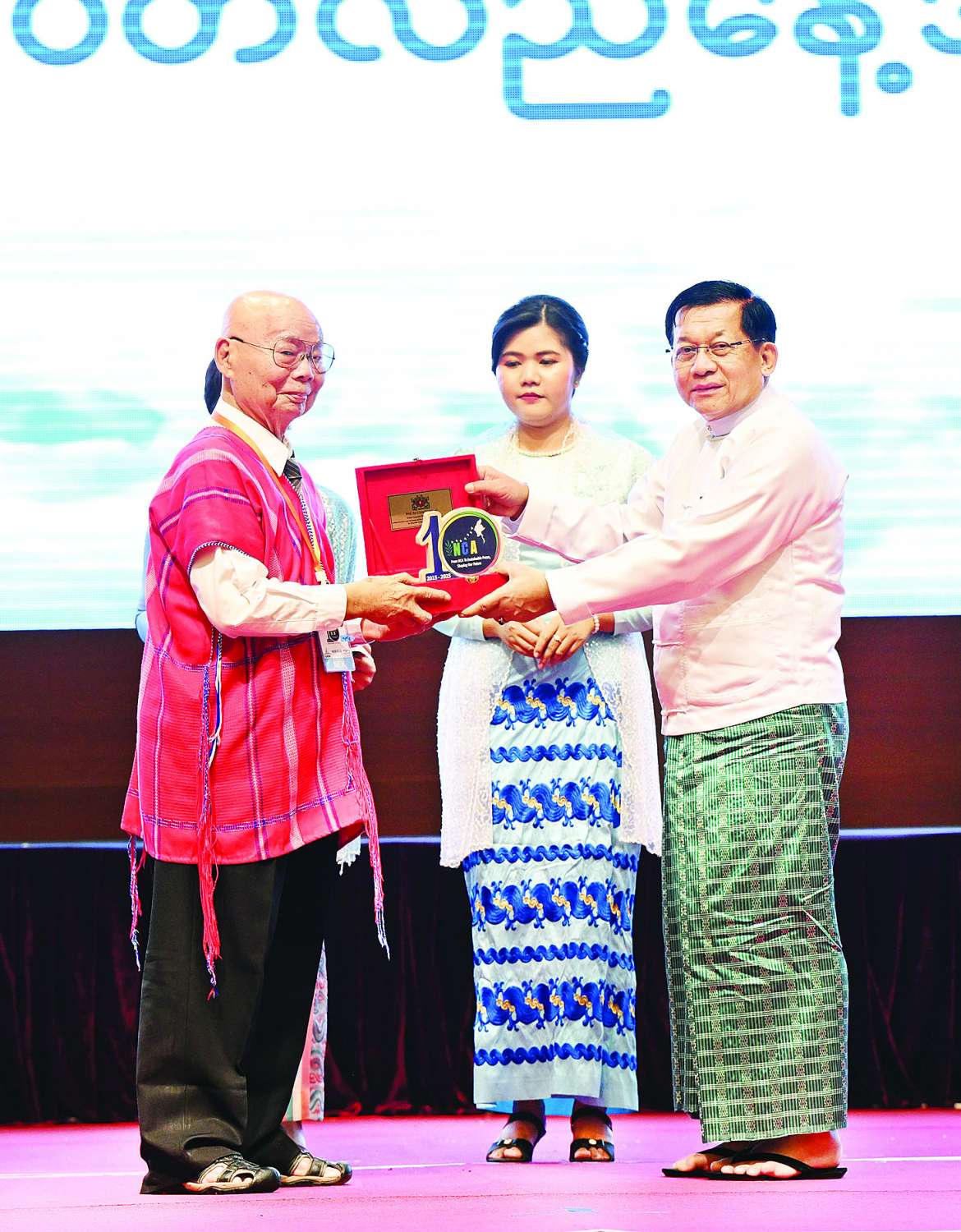 ယင်းနောက် NCA တွင် ပါဝင်လက်မှတ်ရေးထိုးခဲ့ကြသော ကရင်တိုင်းရင်းသားခေါင်းဆောင် စောမူတူးစေးဖိုး၊ NCA လက်မှတ်ရေးထိုးခဲ့သည့် နိုင်ငံတကာအသိသက်သေများ၏ ကိုယ်စားလှယ် တရုတ်ပြည်သူ့သမ္မတနိုင်ငံ နိုင်ငံခြားရေးရာဝန်ကြီးဌာန အာရှရေးရာအထူးကိုယ်စားလှယ် H.E Mr Deng Xijun ၊ အန္ဒိယအသိသက်သေနှင့် နိုင်ငံခြားရေးအတွင်းဝန်ကိုယ်စား အိန္ဒိယနိုင်ငံသံအမတ်ကြီး H.E Shri Abhay Thakur ၊ ထိုင်းနိုင်ငံမှ အာရှငြိမ်းချမ်းရေးနှင့် ပြန်လည်သင့်မြတ်ရေးကောင်စီ(APRC)၏ ယာယီအထွေထွေအတွင်းရေးမှူးချုပ် မြန်မာနိုင်ငံဆိုင်ရာ ထိုင်းသံအမတ်ကြီးဟောင်း H.E. Mr. Plsanu Suvanajata နှင့် NCAတွင် ပါဝင်လက်မှတ်ရေးထိုးသူ ဦးအောင်မင်း တို့က တစ်နိုင်ငံလုံး ပစ်ခတ်တိုက်ခိုက်မှုရပ်စဲရေး သဘောတူစာချုပ် (NCA) (၁၀)နှစ်ပြည့် နှစ်ပတ်လည်နေ့ အထိမ်းအမှတ် ဂုဏ်ပြုစကားများ ပြောကြားကြသည်။ထို့ နောက် နိုင်ငံတော်ယာယီသမ္မတ နိုင်ငံတော်လုံခြုံရေးနှင့် အေးချမ်းသာယာရေးကော်မရှင် ဥက္ကဋ္ဌ အမျိုးသားစည်းလုံးညီညွတ်ရေးနှင့် ငြိမ်းချမ်းရေးဖော်ဆောင်မှု ဗဟိုကော်မတီ ဥက္ကဋ္ဌ ဗိုလ်ချုပ်မှူးကြီး မင်းအောင်လှိုင်က တရုတ်နိုင်ငံ၊ အိန္ဒိယနိုင်ငံနှင့် အာဆီယံဒေသတွင်းမှ အထူးဖိတ်ကြားထားသည့် ဧည့်သည်တော်များ၊ ကရင်အမျိုးသားခေါင်းဆောင် စောမူတူးစေဖိုးနှင့် NCA တွင် ပါဝင်လက်မှတ်ရေးထိုးသူ ဦးအောင်မင်း တို့အား အမှတ်တရလက်ဆောင်ပစ္စည်းများ ပေးအပ်သည်။