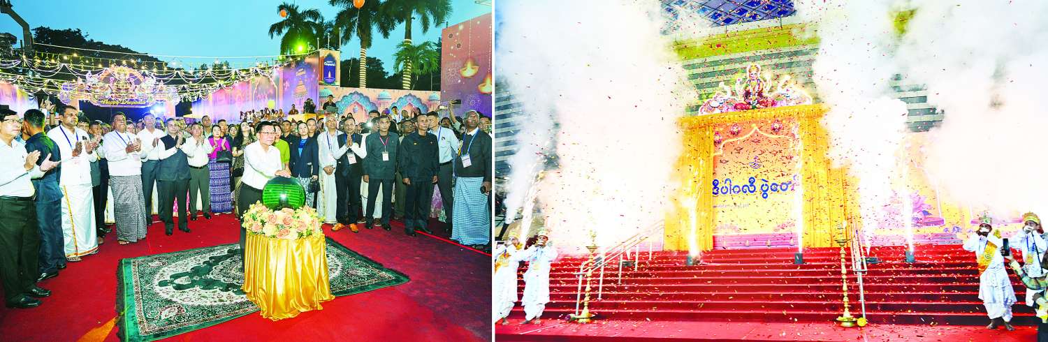 ထို့နောက်နိုင်ငံတော်ယာယီသမ္မတ နိုင်ငံတော်လုံခြုံရေးနှင့် အေးချမ်းသာယာရေးကော်မရှင်ဥက္ကဋ္ဌနှင့် ဇနီးတို့အား ဟိန္ဒူရိုးရာ ဆီမီးနံ့သာဖြင့် ကြိုဆိုကြပြီး ဟိန္ဒူရိုးရာ တစ်ခုဖြစ်သည့် မွန်မြတ်ပြီးမင်္ဂလာရှိသော ဟိန္ဒူရိုးရ Pur Kumbham (ပုရ်ဏကုမ္ဘမ်) ဖြင့်ဆုတောင်း ကြိုဆိုဂါရဝပြုကြသည်။ ယင်းနောက် နိုင်ငံတော်ယာယီသမ္မတ နိုင်ငံတော်လုံခြုံရေးနှင့် အေးချမ်းသာယာရေးကော်မရှင်ဥက္ကဋ္ဌက ဒီပါဝလီအထိမ်းအမှတ်အခမ်းအနားကို စက်ခလုပ်နှိပ်ဖွင့်လှစ်ပေးပြီး တက်ရောက်လာကြသူများနှင့်အတူ စုပေါင်းမှတ်တမ်းတင်ဓာတ်ပုံရိုက်သည်။