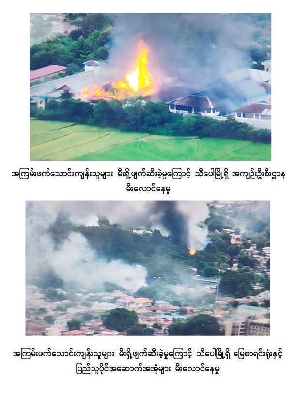 TNLA အကြမ်းဖက်သောင်းကျန်းသူများသည် သီပေါမြို့မှ ဆုတ်ခွာထွက်ပြေးစဉ် နောင်ချိုမြို့နှင့် ကျောက်မဲမြို့များတွင် လုပ်ဆောင်ခဲ့သည့် ၎င်းတို့၏ အကြမ်းဖက်လမ်းစဉ်နည်းလမ်းအတိုင်း လုပ်ဆောင်လျက်ရှိသည့် စစ်ရေးနှင့်သက်ဆိုင်ခြင်းမရှိသည့် သီပေါမြို့ရှိ အကျဉ်းဦးစီးဌာန၊ အထွေထွေအုပ်ချုပ်ရေးမှူးရုံး၊ မြေစာရင်းရုံး၊ သီပေါဟိုတယ်အပါအဝင် အခြားဌာနဆိုင်ရာ အဆောက်အအုံများနှင့် ပြည်သူလူထု၏ နေအိမ်များအား ရက်စက်ယုတ်မာရှိုင်းစိုင်းစွာ မီးရှို့ထွက်ပြေးသွားခဲ့ပြီး ၎င်းတို့ခေတ္တထိန်းချုပ်စဉ်ကာလအတွင်း မြို့/ရွာများအတွင်းရှိ ဌာနဆိုင်ရာအဆောက်အအုံများ၊ ဆေးရုံများနှင့်လူနေအိမ်များတွင် ဘန်ကာများဆောက်လုပ်ပြီး တပ်မတော်စစ်ကြောင်းများအား ပစ်ခတ်တိုက်ခိုက်ခြင်း၊ ဒေသခံပြည်သူများ၏ အိုးအိမ်များကို ခံစစ်တံတိုင်းအဖြစ် အကာအကွယ်ရယူ၍ ပစ်ခတ်တိုက်ခိုက်ခြင်းများကို လုပ်ဆောင်ခဲ့သည့်အပြင် ဒေသခံပြည်သူများ နေအိမ်များနှင့် ဈေးဆိုင်ခန်းများအား ဖောက်ထွင်း၍ တန်ဖိုးကြီးပစ္စည်းများ၊ စားသောက်ကုန်နှင့် အသုံးအဆောင်ပစ္စည်းများကို အဓမ္မယူဆောင်ခြင်းများ လုပ်ဆောင်ခဲ့သည်။