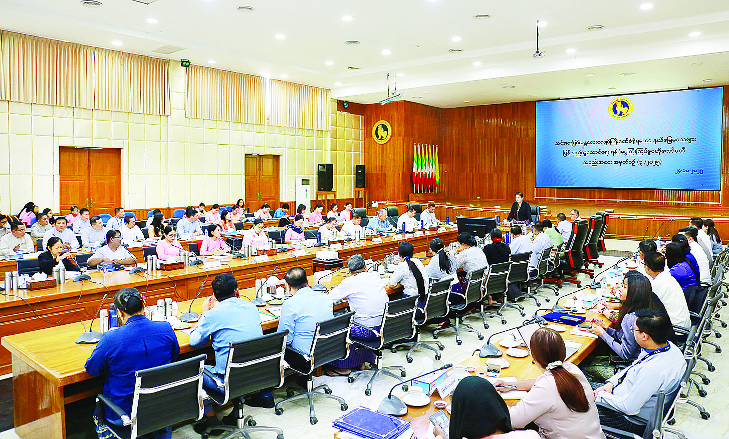 ဆက်လက်၍ (၅၃)ကြိမ် မြောက် ASEAN Banking Council အစည်းအဝေးနှင့် (၂၄)ကြိမ်မြောက် ASEAN Banking Conference တို့ကို နိုဝင်ဘာလတွင်ရန်ကုန်မြို့၌ကျင်းပမည့်ကိစ္စနှင့်ပတ်သက်၍ နိုင်ငံတော်ဗဟိုဘဏ် အစည်းအဝေးခန်းမ၌ဆွေးနွေး ကြသည်။