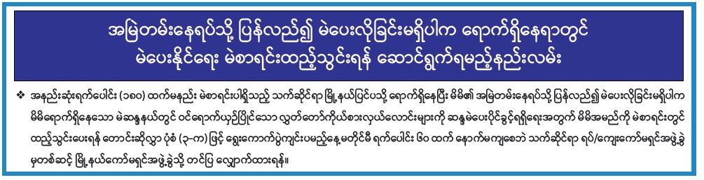 အမြဲတမ်းနေရပ်သို့ ပြန်လည်၍ မဲပေးလိုခြင်းမရှိပါက ရောက်ရှိနေရာတွင် မဲပေးနိုင်ရေး မဲစာရင်းထည့်သွင်းရန် ဆောင်ရွက်ရမည့်နည်းလမ်း