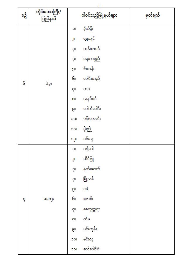 ပါတီစုံဒီမိုကရေစီအထွေထွေရွေးကောက်ပွဲအပိုင်း( ၂ )ကျင်းပမည့် နေ့ရက်နှင့် ပါဝင်သည့်မြို့နယ်များ သတ်မှတ်ကြေညာခြင်း