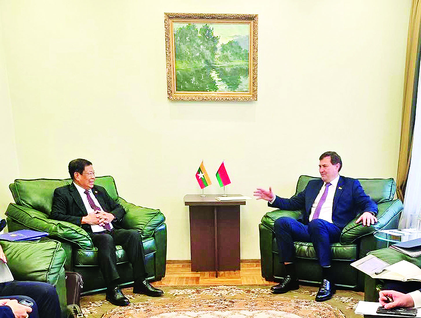 ပြည်ထောင်စုဝန်ကြီးသည် ယနေ့တွင် ဘယ်လာရုစ်နိုင်ငံ နိုင်ငံခြားရေးဝန်ကြီး မစ္စတာ မက်ဇင်ရူဇင် ကော့ဗ်နှင့်တွေ့ဆုံဆွေးနွေးရာတွင် မြန်မာ-ဘယ်လာရုစ် နှစ်နိုင်ငံ ပူးပေါင်းဆောင်ရွက်မှုတိုးမြှင့်ရန်ကိစ္စ ရပ်များ၊ နှစ်နိုင်ငံအကြား လက်မှတ်ရေးထိုးရန်ရှိသည့် နိုင်ငံရေး၊ စီးပွားရေး၊ ယဉ်ကျေးမှုနှင့် လူမှုရေးဆိုင်ရာ သဘောတူညီချက်များနှင့် နားလည်မှုစာချွန်လွှာများ လက်မှတ်ရေးထိုးမည့် ကိစ္စရပ်များကို ရင်းနှီးပွင့်လင်းစွာ ဆွေးနွေးခဲ့ကြသည်။