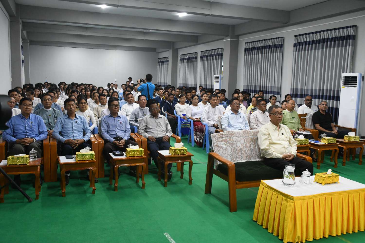 ဟောပြောပွဲတွင် ပြည်နယ်စက်မှုကြီးကြပ်ရေးနှင့်စစ်ဆေးရေးဦးစီးဌာန ညွှန်ကြားရေးမှူး ဦးနိုင်ဝင်းက Combivation of theory and Practise for Boiler and Pressure Vessel များအကြောင်း၊ ပြည်နယ်ကျေးလက်ဖွံ့ဖြိုးရေးဦးစီးဌာန ညွှန်ကြားရေးမှူး ဦးဝင်းနိုင်က Building Comstruction and Building Materials များအကြောင်းကို အသိပညာပေးဆွေးနွေးဟောပြောသွားမည်ဖြစ်ပြီး Precision Auto Engineering Co.,Ltd သုံးဘီးနည်းပညာဆိုင်ရာအလုပ်အကိုင်အခွင့်အလမ်းသင်တန်းကို သင်တန်းသား(၂၄)ဦးဖြင့် ၁၀ ရက်ကြာအခမဲ့သင်ကြားပို့ချပေးသွားမည်ဖြစ်ကာ ခေတ္တဝန်ကြီးချုပ်နှင့်တာဝန်ရှိသူများသည် သင်တန်းခန်းမအတွင်း သင်တန်းပို့ချပေးနိုင်ရန်ပြင်ဆင်ထားရှိမှုနှင့်သင်ထောက်ကူပစ္စည်းများကို ကြည့်ရှုစစ်ဆေး၍ တာဝန်ရှိသူများအား လိုအပ်သည်များမှာကြားခဲ့ကြောင်း သတင်းရရှိသည်။