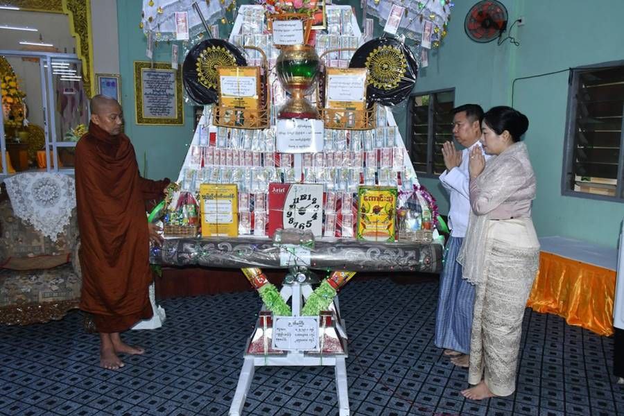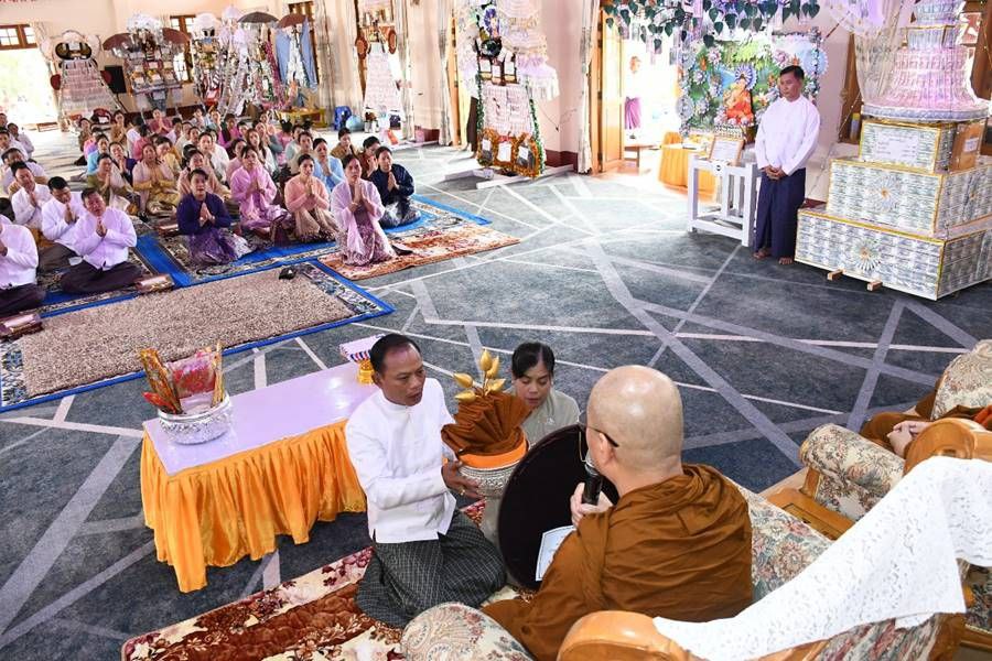 ဦးစွာ တိုင်းဒေသကြီးနှင့် ပြည်နယ်ဝန်ကြီးချုပ်များ၊ ကာကွယ်ရေးဦးစီးချုပ်ရုံး(ကြည်း)မှ တပ်မတော်အရာရှိကြီးများ၊ တိုင်းမှူးများနှင့် တက်ရောက်လာကြသူများက ဆရာတော်အရှင်သူမြတ်များထံမှ သီလခံယူဆောက်တည်ကြပြီး သံဃာတော်များ ရွတ်ပွားချီးမြှင့်တော်မူသည့် ပရိတ်တရားတော်များကို နာယူကြသည်။ ထို့နောက် တိုင်းဒေသကြီးနှင့် ပြည်နယ်ဝန်ကြီးချုပ်များ၊ ကာကွယ်ရေးဦးစီးချုပ်ရုံး(ကြည်း)မှ တပ်မတော်အရာရှိကြီးများ၊ တိုင်းမှူးများနှင့် တက်ရောက်လာကြသူများက သံဃာတော်များအား ကထိန်လျာသင်္ကန်းနှင့် လှူဖွယ်ပစ္စည်းများ အသီးသီးဆက်ကပ်လှူဒါန်းကြသည်။