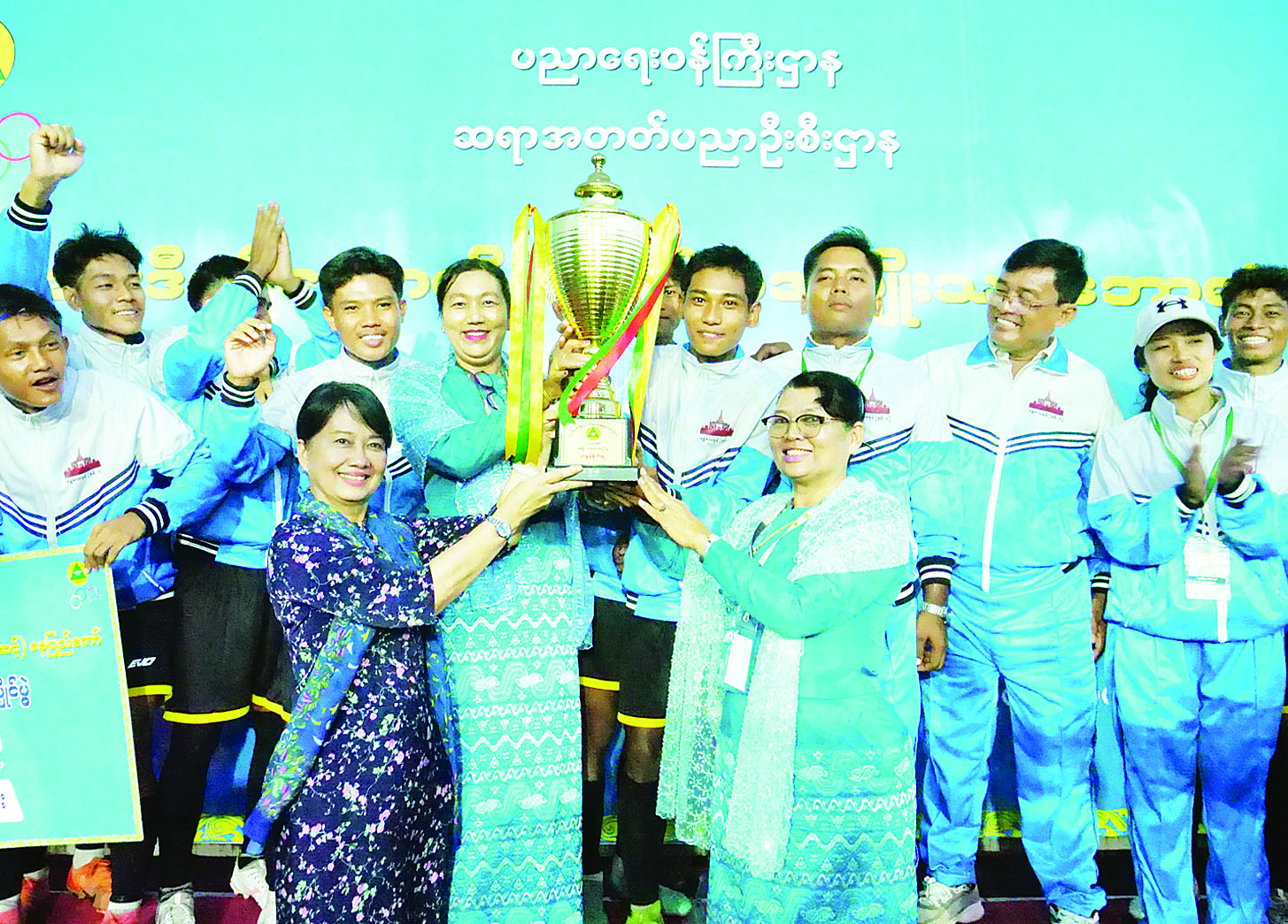 ယင်းနောက် အထူးဆုရရှိသော ရန်ကုန်ဇုန်(ခ)အသင်းကို ပညာရေးဝန်ကြီးရုံး ညွှန်ကြားရေးမှူးချုပ် ဒေါက်တာအောင်ကျော်က ငွေသားဆု ငွေကျပ် ၁၀ သိန်းကိုလည်းကောင်း၊ တတိယဆုရရှိသော မန္တလေး ဇုန်(ခ)အသင်းကို ဒုတိယဝန်ကြီး ဦးနေမျိုးလှိုင်က တစ်ဦးချင်းဆုတံဆိပ်များနှင့် ငွေသားဆု ငွေကျပ် သိန်း ၂၀ ကိုလည်းကောင်း၊ ဒုတိယဆုရရှိသော ရန်ကုန်ဇုန်(က) အသင်းကို ဒုတိယဝန်ကြီး ဒေါက်တာ ဇော်မြင့်က တစ်ဦးချင်းဆုတံဆိပ်များနှင့် ငွေသားဆု ငွေကျပ်သိန်း ၃၀ ကိုလည်းကောင်း ပေးအပ်ချီးမြှင့် ကြသည်။