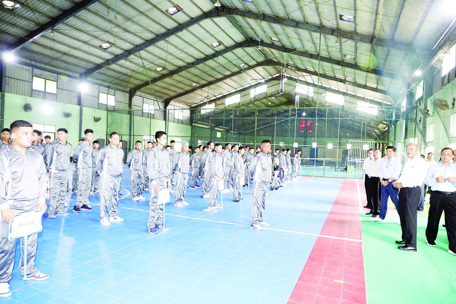 မြန်မာနိုင်ငံအိုလံပစ်ကော်မတီဥက္ကဋ္ဌ အားကစားနှင့်လူငယ်ရေးရာဝန်ကြီးဌာနနှင့် ဟိုတယ်နှင့်ခရီးသွားလာရေးဝန်ကြီးဌာန ပြည်ထောင်စုဝန်ကြီး Jeng Phang နော်တောင်သည် အားကစားနှင့် လူငယ်ရေးရာဝန်ကြီးဌာန ဒုတိယဝန်ကြီး ဦးထိန်လင်း၊ အားကစားနှင့်ကာယပညာဦးစီးဌာန ညွှန်ကြားရေးမှူးချုပ်နှင့်အတူ ယမန်နေ့မွန်းလွဲပိုင်း၌ ရန်ကုန်မြို့ရှိဒဂုံမြို့သစ်မြောက်ပိုင်း မသန်စွမ်းအားကစား အဖွဲ့ချုပ်၌ (၁၃)ကြိမ်မြောက် အာဆီယံမသန်စွမ်း အားကစားပြိုင်ပွဲသို့ ဝင်ရောက်ယှဉ်ပြိုင်ရန်အတွက်စခန်းဝင်လေ့ကျင့်လျက်ရှိသည့် မသန်စွမ်းအားကစားအဖွဲ့အား ကြည့်ရှုစစ်ဆေးသည်။