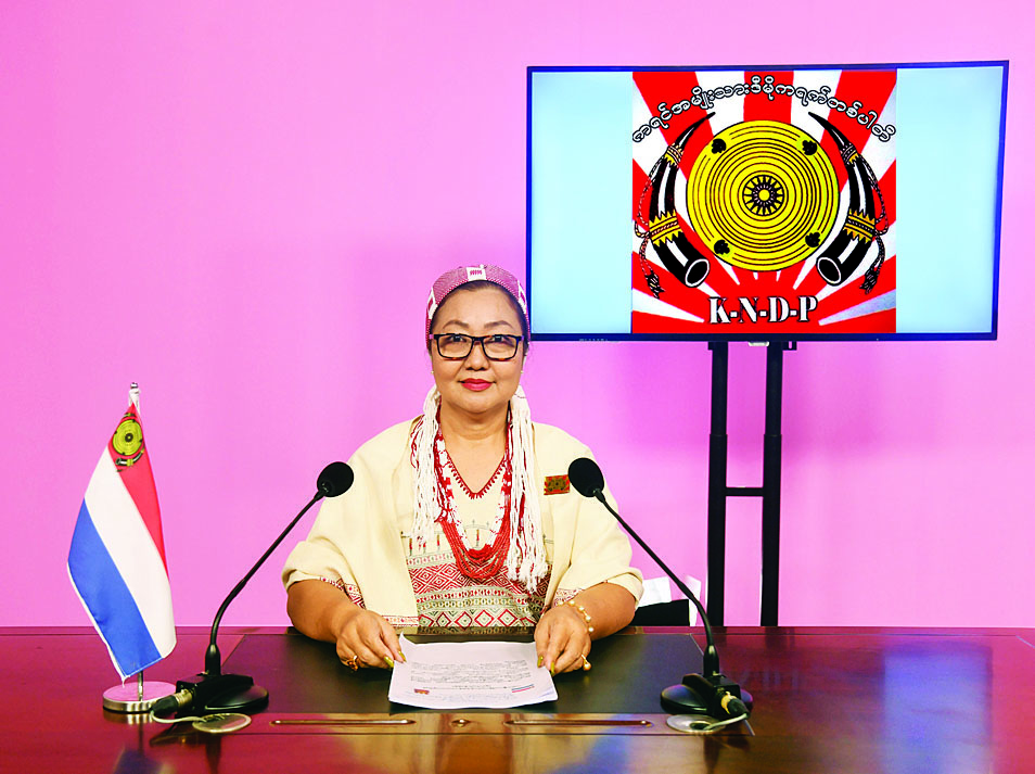 မင်္ဂလာအပေါင်းနှင့် ပြည့်စုံကြပါစေရှင်၊ မြန်မာနိုင်ငံသူ/သားများအားလုံး ကိုယ်စိတ်နှစ်ဖြာ ကျန်းမာချမ်းသာပါစေကြောင်း ရှေးဦးစွာ ဆုမွန်ကောင်းတောင်းပေးလိုက်ပါတယ်ရှင်။ ကျွန်မကတော့ ကရင်ပြည်နယ်အခြေစိုက် ကရင်အမျိုးသားဒီမိုကရက်တစ်ပါတီဗဟို၏ အတွင်းရေးမှူး (၂) နော်သဇင်တုပ် ဖြစ်ပါတယ်ရှင်။ ကရင်အမျိုးသားဒီမိုကရက်တစ်ပါတီ၏ သဘောထား၊ မူဝါဒနှင့် ရှေ့ဆက်လုပ်ငန်းစဉ်များကို ဖတ်ကြားပါ့မယ်ရှင်-