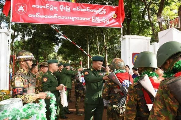 ရှေ့တန်းစစ်မျက်နှာများတွင် ရွပ်ရွပ်ချွံချွံတိုက်ပွဲဝင်ပြီး အောင်ပွဲအလီလီရယူနိုင်ခဲ့သော အောင်ပွဲရရှေ့တန်းပြန်တပ်မတော်သားများအား ဂုဏ်ပြုကြိုဆိုခြင်းကို ယမန်နေ့ညနေပိုင်းတွင် မိုင်းပွန်မြို့ရှိ နယ်မြေခံတပ်၌ပြုလုပ်ရာ အရှေ့အလယ်ပိုင်းတိုင်းစစ်ဌာနချုပ်တိုင်းမှူး ဗိုလ်ချုပ် စိုးမြတ်ထွဋ်နှင့်အဖွဲ့ဝင်များ၊ အရာရှိ၊ စစ်သည်၊ မိသားစုဝင်များ၊ ဌာနဆိုင်ရာ တာဝန်ရှိသူများ၊ ဒေသခံတိုင်းရင်းသား ပြည်သူများ၊ ဆရာ/ဆရာမများ တက်ရောက်ကြသည်။