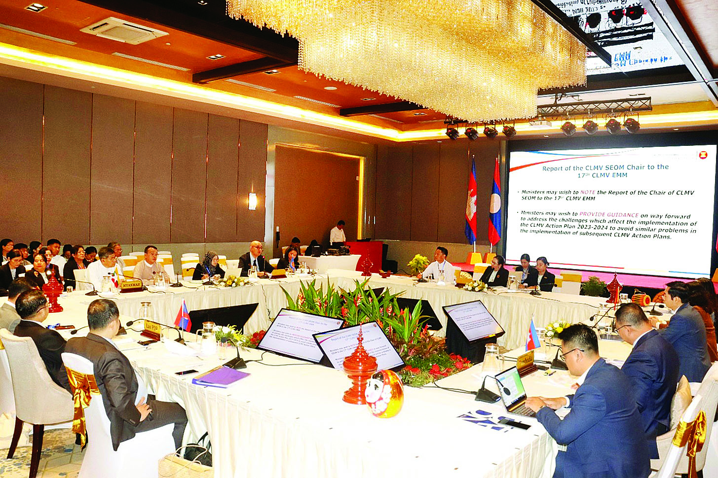 ထို့ပြင် စီအယ်လ်အမ်ဗွီနိုင်ငံများအား စီးပွားရေးအလယ်အလတ်ရှိသောအဆင့်သို့ ရောက်ရှိစေရန် ရည်မှန်းရေးဆွဲထားသည့် စီအယ်လ်အမ်ဗွီ ဖွံ့ဖြိုးတိုးတက်မှုမူဘောင် အကောင်အထည်ဖော်ရေးလုပ်ငန်းအစီအစဉ်အတွက် ပေါင်းစပ်ညှိနှိုင်းရေးနည်းလမ်းများနှင့် လမ်းညွှန်ချက်များကို ဆွေးနွေး၍ အစည်းအဝေးတွင် အတည်ပြုကြသည်။
