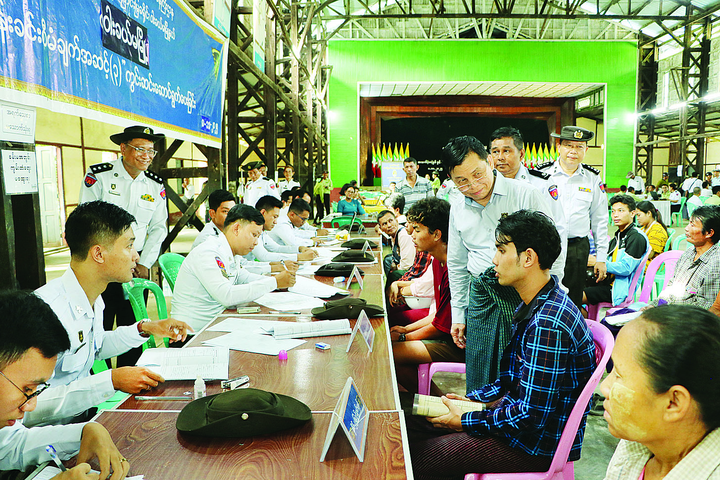 ထို့နောက် ပြည်ထောင်စုဝန်ကြီးသည် လုပ်ငန်းဆောင်ရွက်နေသည့် ဌာနဆိုင်ရာတာဝန်ရှိသူများနှင့် တွေ့ဆုံ၍ မဲဆန္ဒရှင်စာရင်းမှန်ကန်ရေး၊ အထွေထွေရွေးကောက်ပွဲ အောင်မြင်စွာ ကျင်းပနိုင်ရေး လုပ်ငန်းစဉ်များနှင့် စပ်လျဉ်း၍ ဝိုင်းဝန်းကြိုးပမ်း ဆောင်ရွက်ကြရန်မှာကြားကာ ဌာနအလိုက် တာဝန်ခံများကို အလှူရှင်များ လှူဒါန်းသည့်စားသောက်ဖွယ်ရာနှင့် ရပ်ကွက်၊ ကျေးရွာ အုပ်ချုပ်ရေးမှူးများကို ဆိုလာမီးလုံးများ ထောက်ပံ့ပေး အပ်ခဲ့ကြောင်း သိရသည်။
