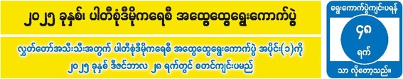လွှတ်တော်အသီးသီးအတွက် ပါတီစုံဒီမိုကရေစီ အထွေထွေရွေးကောက်ပွဲ အပိုင်း(၁)ကို ၂၀၂၅ ခုနှစ် ဒီဇင်ဘာလ ၂၈ ရက်တွင် စတင်ကျင်းပမည် 11/10/2025 လွှတ်တော်အသီးသီးအတွက် ပါတီစုံဒီမိုကရေစီ အထွေထွေရွေးကောက်ပွဲ အပိုင်း(၁)ကို ၂၀၂၅ ခုနှစ် ဒီဇင်ဘာလ ၂၈ ရက်တွင် စတင်ကျင်းပမည်