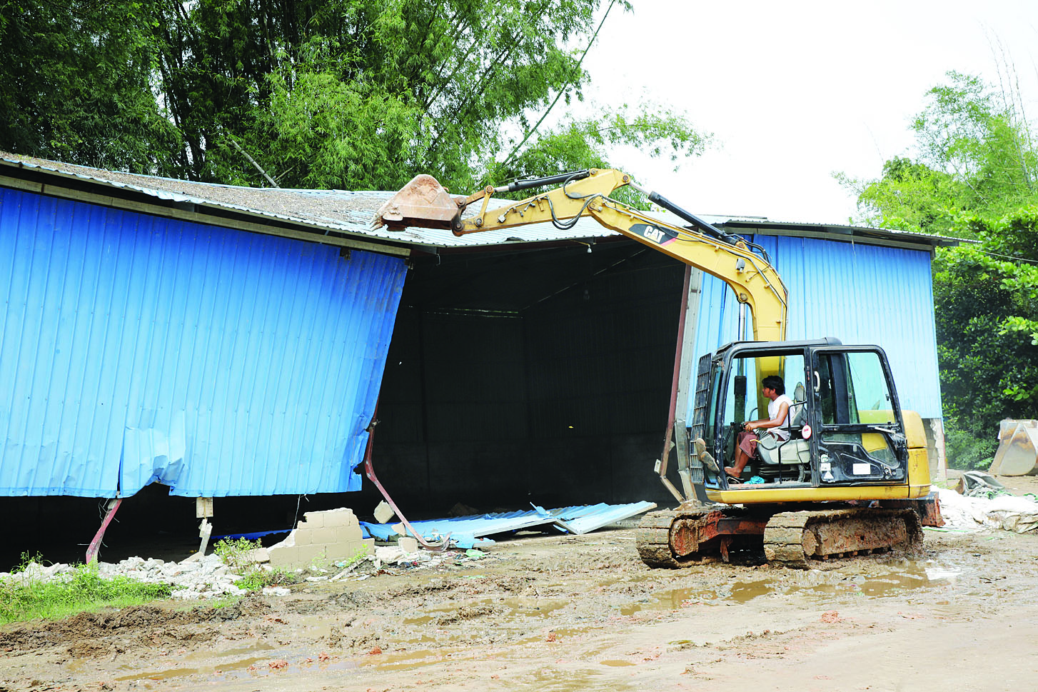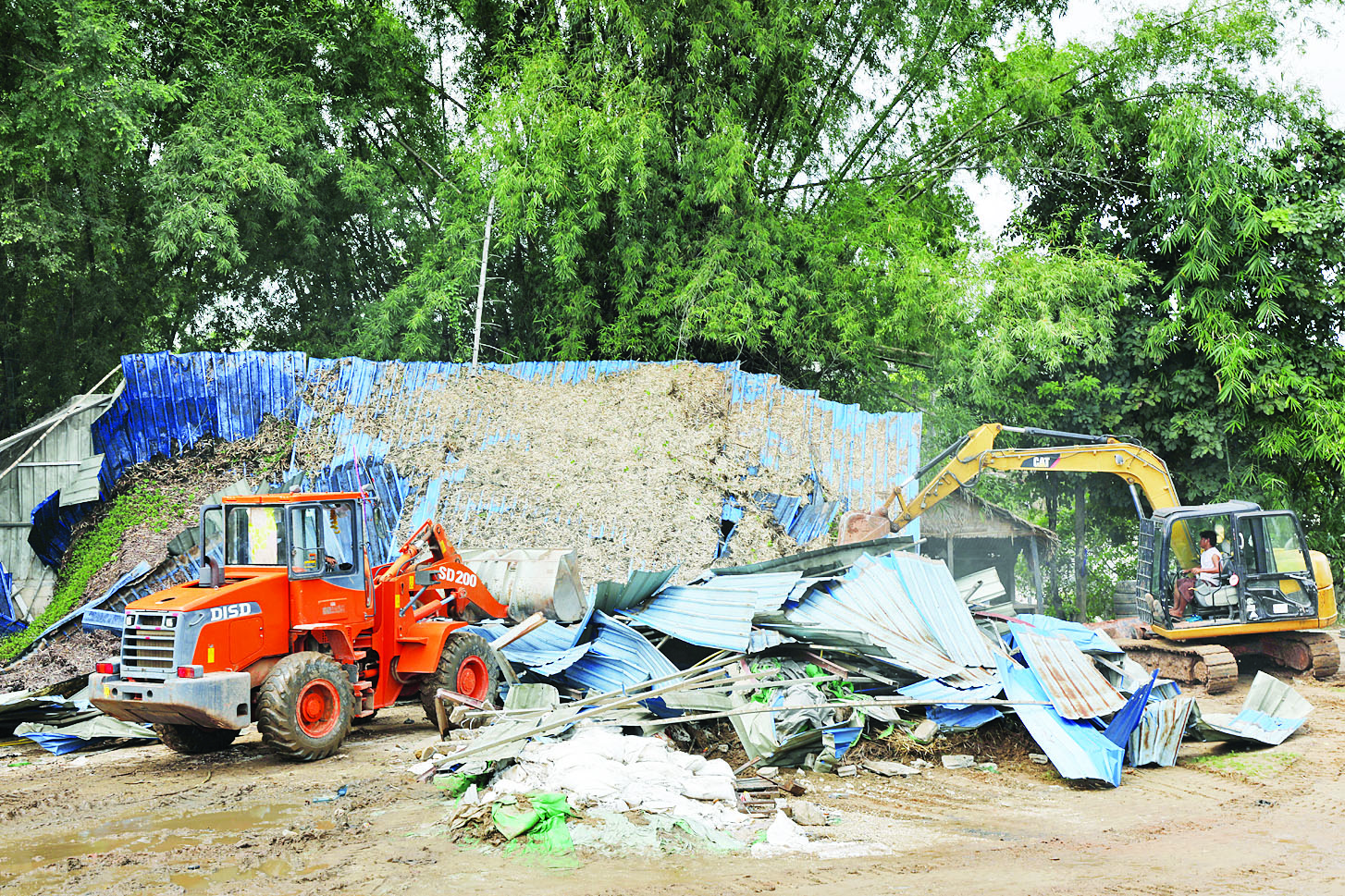 ထိုသို့ ဖျက်ဆီးရှင်းလင်းခြင်းလုပ်ငန်းများ ဆောင်ရွက်ရာတွင် လုံခြုံရေးအဖွဲ့နှင့် ဖယ်ရှားရှင်းလင်းရေးအဖွဲ့ဝင်များသည် ယနေ့နံနက်ပိုင်းတွင် စက်၊ ယာဉ်၊ ယန္တရားများနှင့်အတူ မြဝတီမြို့ အမှတ် (၅) ရပ်ကွက်ရှိ ၃၅ ဂိတ် ဒေသအခေါ် အောင်ပါဝါဂိတ်-၂ ကို သွားရောက်စစ်ဆေးပြီး အလျားပေ ၁၂၀၊ အနံပေ ၆၀၊ အမြင့် ၂၅ ပေရှိ သံဖရိန်၊ အုတ်တက်၊ သွပ်မိုးသွပ်ကာ ပစ္စည်းသိုလှောင်ရုံအား ဖယ်ရှားရှင်းလင်းခြင်းလုပ်ငန်းကို ဆောင်ရွက်ကြသည်။