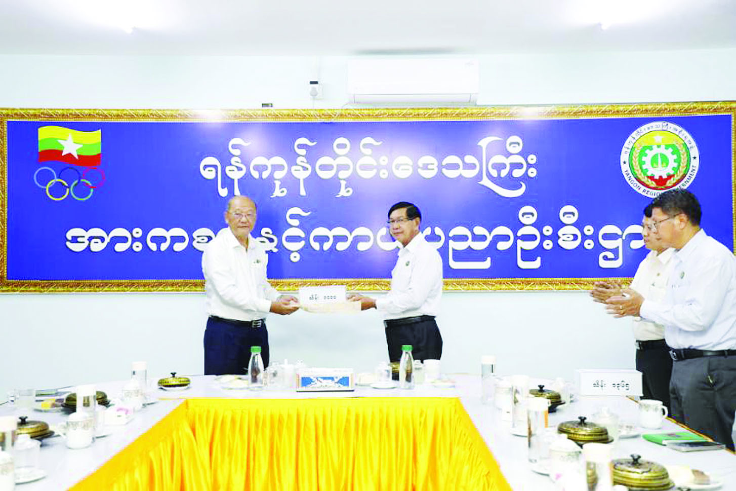 ၂၀၂၅ခုနှစ် ဒီဇင်ဘာ ၉ ရက်မှ ၂၀ ရက်အထိ ထိုင်းနိုင်ငံတွင် ကျင်းပပြုလုပ်မည့် (၃၃)ကြိမ်မြောက် အရှေ့တောင်အာရှအားကစားပြိုင်ပွဲသို့ ဝင်ရောက်ယှဉ်ပြိုင်မည့် အားကစားအဖွဲ့များ အောင်မြင်မှုရရှိစေရေးနှင့် ပြိုင်ပွဲသို့ဝင်ရောက်ယှဉ်ပြိုင်ရန် ရန်ကုန်တိုင်းဒေသကြီးမှ ရွေးချယ်ခံရသည့် အုပ်ချုပ်သူ/နည်းပြများနှင့် အားကစားသမားများအတွက် ရန်ကုန်တိုင်းဒေသကြီးမှ ထောက်ပံ့ချီးမြှင့်ငွေပေးအပ်သည့် အခမ်းအနားကို ရန်ကုန်တိုင်းဒေသကြီး တောင်ဥက္ကလာပမြို့နယ် ပဒေသာအားကစားကွင်းရှိ အားကစားနှင့်ကာယပညာဦးစီးဌာနရုံး အစည်းအဝေးခန်းမ၌ ကျင်းပရာ မြန်မာနိုင်ငံအိုလံပစ်ကော်မတီဥက္ကဋ္ဌ၊ အားကစားနှင့်လူငယ်ရေးရာဝန်ကြီးဌာနနှင့် ဟိုတယ်နှင့်ခရီးသွားလာရေးဝန်ကြီးဌာန ပြည်ထောင်စုဝန်ကြီး Jeng Phang နော်တောင်၊ ရန်ကုန်တိုင်းဒေသကြီး ဝန်ကြီးချုပ် ဦးစိုးသိန်း၊ အားကစားနှင့်ကာယပညာဦးစီးဌာန ညွှန်ကြားရေးမှူးချုပ်နှင့် တာဝန်ရှိသူများ တက်ရောက်ကြသည်။