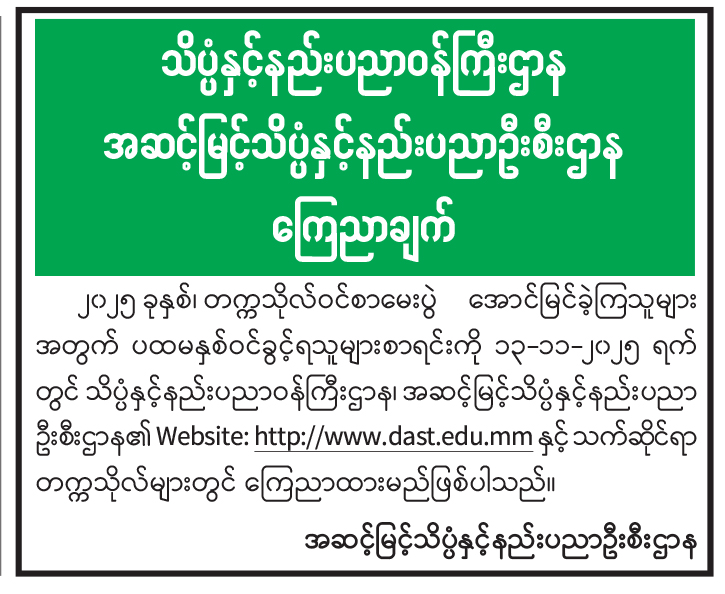 သိပ္ပံနှင့်နည်းပညာဝန်ကြီးဌာန အဆင့်မြင့်သိပ္ပံနှင့်နည်းပညာဦးစီးဌာနကြေညာချက်