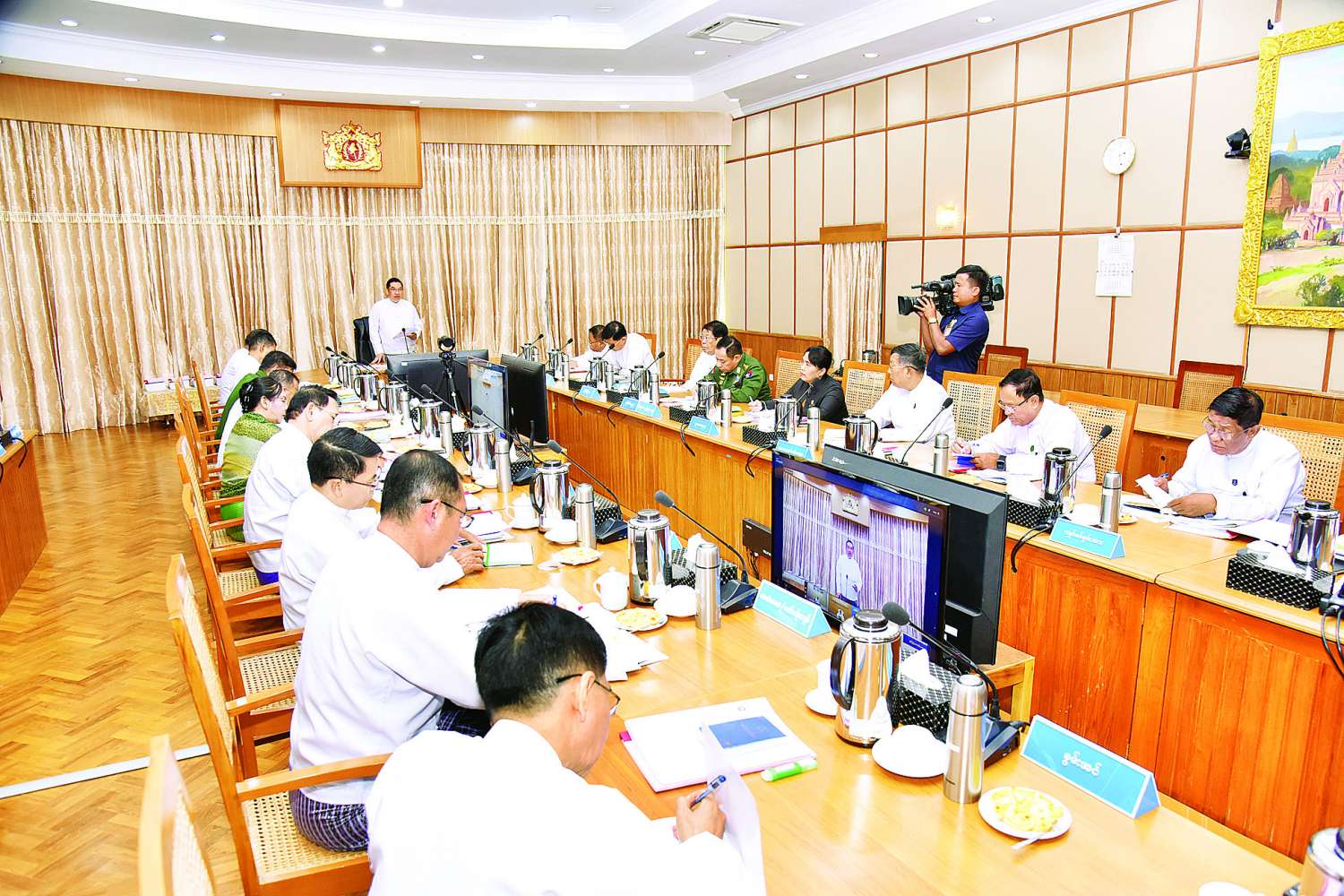 အစည်းအဝေးသို့ ပြည်ထောင်စုဝန်ကြီးများနှင့် တာဝန်ရှိသူများ တက်ရောက်ကြပြီး နေပြည်တော်ကောင်စီဥက္ကဋ္ဌ၊ တိုင်းဒေသကြီး/ ပြည်နယ်ဝန်ကြီးချုပ်များက Video Conference စနစ်ဖြင့် တက်ရောက်ကြသည်။