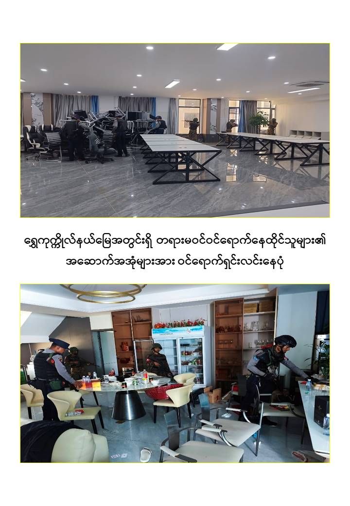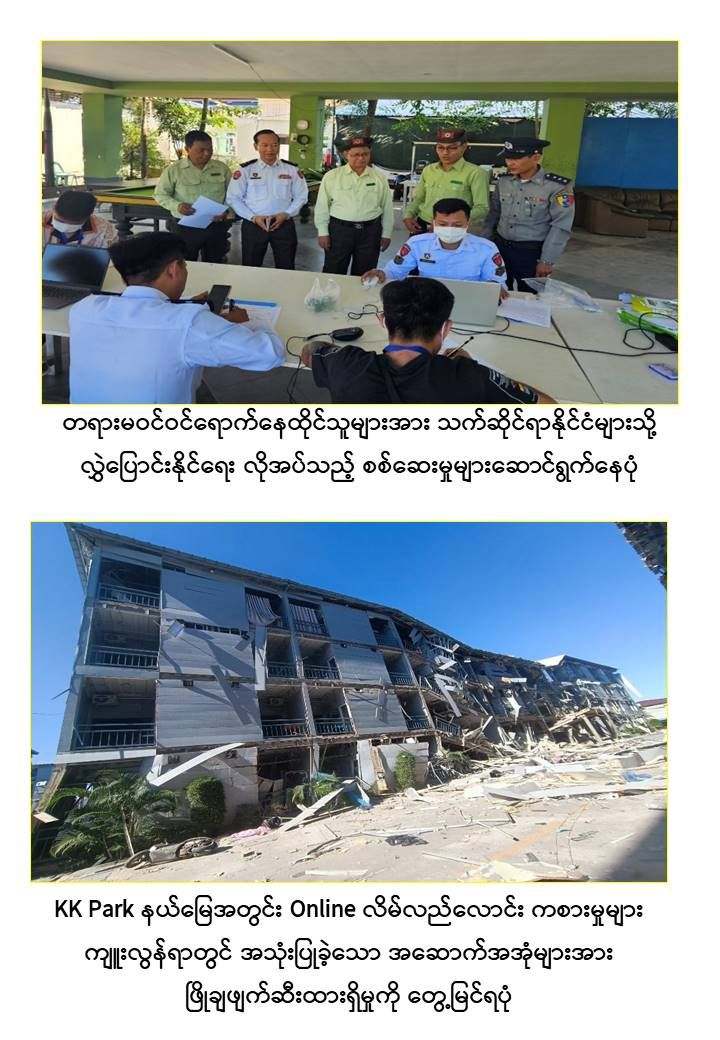 မြန်မာနိုင်ငံအစိုးရအနေဖြင့် နိုင်ငံတကာနှင့် တစ်ကမ္ဘာလုံးကို အန္တရာယ်ပေးနေသည့် online လိမ်လည်မှုများ၊ online လောင်းကစားမှုများ တိုက်ဖျက်ရေးလုပ်ငန်းစဉ်များကို အမျိုးသားရေးတာဝန်တစ်ရပ်အနေဖြင့် အလေးထားတိုက်ဖျက်ဆောင်ရွက်လျက်ရှိပြီး လုံခြုံရေးတပ်ဖွဲ့ဝင်များ၊ အုပ်ချုပ်ရေးအဖွဲ့အစည်းများအပါအဝင် အဖွဲ့စုံပါဝင်သည့် ပူးပေါင်းစစ်ဆင်ရေးအဖွဲ့များသည် Online လိမ်လည်လောင်းကစားမှုများကို အများဆုံးအခြေချလုပ်ကိုင်လျက်ရှိကြသည့် KK Park နယ်မြေအတွင်းရှိ ခွင့်ပြုချက်မရှိဘဲ ဆောက်လုပ်ထားသော တရားမဝင်အဆောက်အအုံများအား ဝင်ရောက်ရှာဖွေရှင်းလင်းခြင်း၊ ဖြိုချဖျက်ဆီးခြင်းများနှင့် ရွှေကုက္ကိုလ်နယ်မြေအတွင်းရှိ Online လောင်းကစားမှုနှင့် လိမ်လည်မှုများ ကျူးလွန်ခဲ့သည့် ပြည်ပနိုင်ငံသားများကို ဖော်ထုတ်ထိန်းသိမ်းခြင်းများကို ဆက်လက်ဆောင်ရွက်လျက်ရှိသည်။