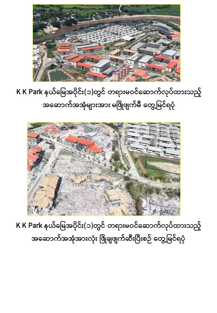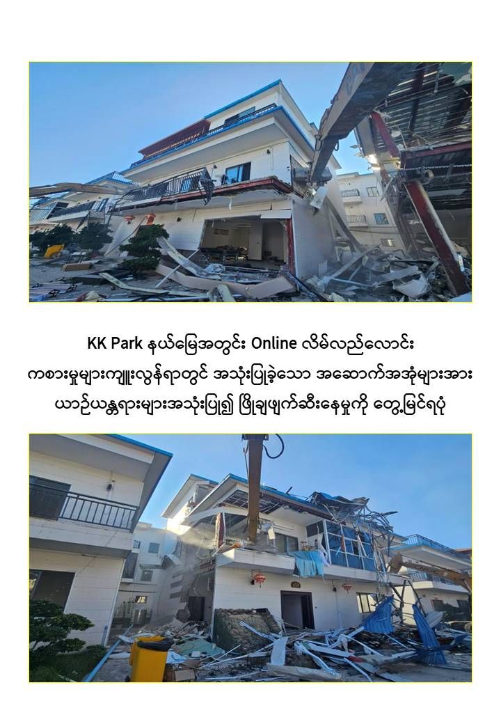 KK Park နယ်မြေအတွင်း Online လိမ်လည်မှုနှင့် လောင်းကစားမှုများ ကျူးလွန်ရာတွင် အသုံးပြုခဲ့သည့် အဆောက်အအုံများ ထပ်မံဖြိုချဖျက်ဆီးပြီး တရားမဝင်ပြည်ပနိုင်ငံသားများအား ထပ်မံဖမ်းဆီးထိန်းသိမ်းနိုင်ခဲ့