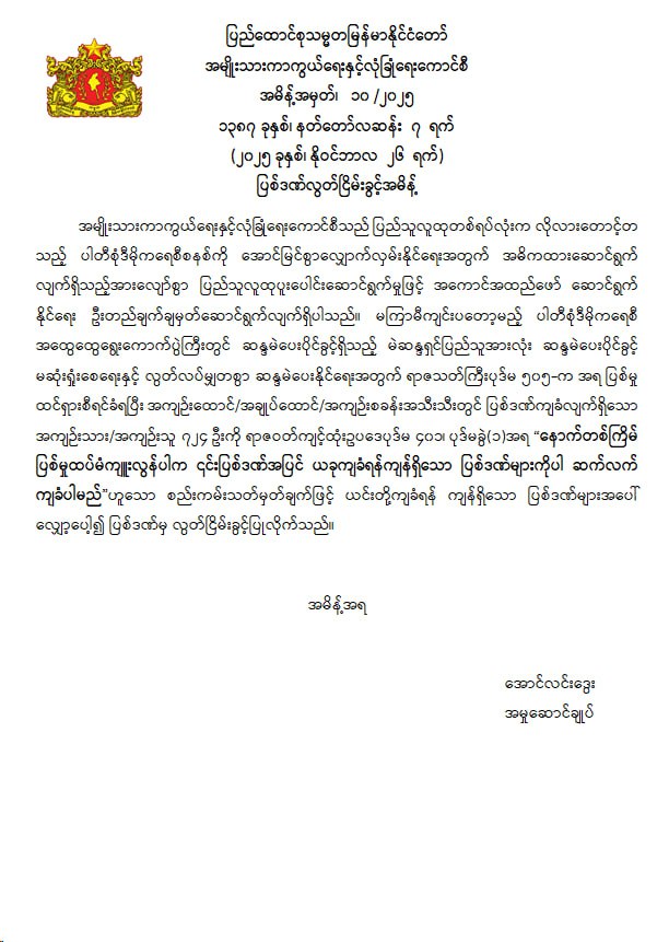 ဝန်ကြီးဌာန ကြေညာချက်များ
