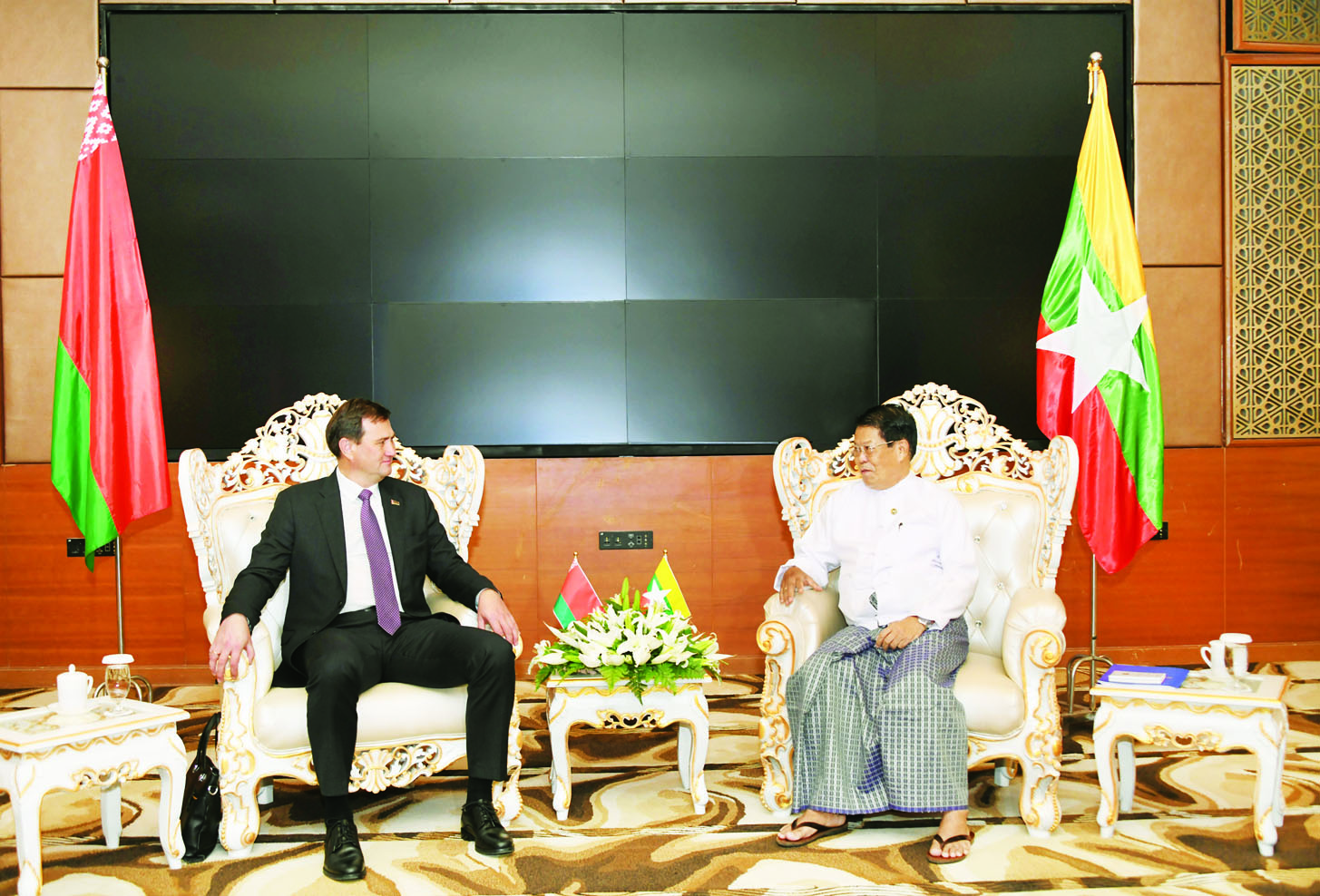 နိုင်ငံခြားရေးဝန်ကြီးဌာန ပြည်ထောင်စုဝန်ကြီး ဦးသန်းဆွေနှင့် ဘယ်လာရုစ်နိုင်ငံခြားရေးဝန်ကြီး မစ္စတာ မက်ဆင်ရူဇန်ကော့ဗ်တို့သည် ယနေ့မွန်းလွဲပိုင်းတွင် နေပြည်တော်ရှိ Jasmine Naypyitaw Hotel ၌ တွေ့ဆုံသည်။