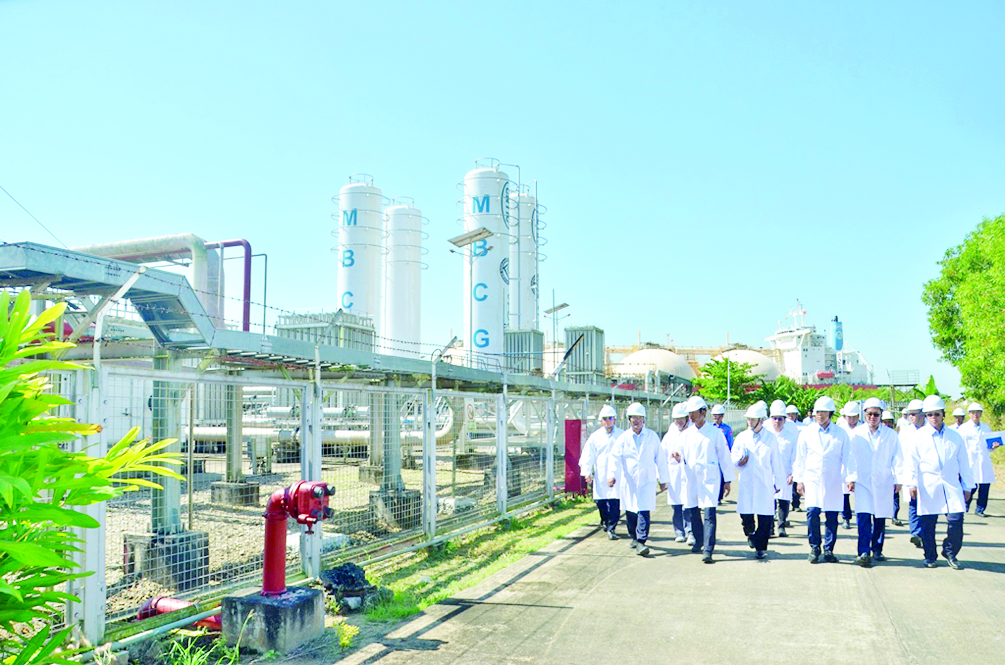 ထို့နောက် သီလဝါဆိပ်ကမ်း၌ FSU ဆိုက်ကပ်ထားရှိမှု၊ သိုလှောင်ထားသော LNG ဓာတ်ငွေ့ရည်ကို ပိုက်လိုင်းများဖြင့် ဓာတ်ငွေ့ပြန်လည်ပြုလုပ်သောစက်ရုံ (Regasification Unit)သို့ ပေးပို့နေမှု၊ LNG ကို သဘာဝဓာတ်ငွေ့ပြန်လည်ပြုလုပ်နေမှုတို့ကို ကြည့်ရှုစစ်ဆေးပြီး သာကေတ ၃၀၀ မဂ္ဂါဝပ် ဓာတ်အားပေးစက်ရုံ၌ ဓာတ်အားထိန်းချုပ်ခန်းနှင့် ဓာတ်အားပေးစက်ရုံဝင်းအတွင်း ဓာတ်အားပေးစက်များ စမ်းသပ်မောင်းနှင်နေမှုကို ကြည့်ရှုစစ်ဆေးသည်။