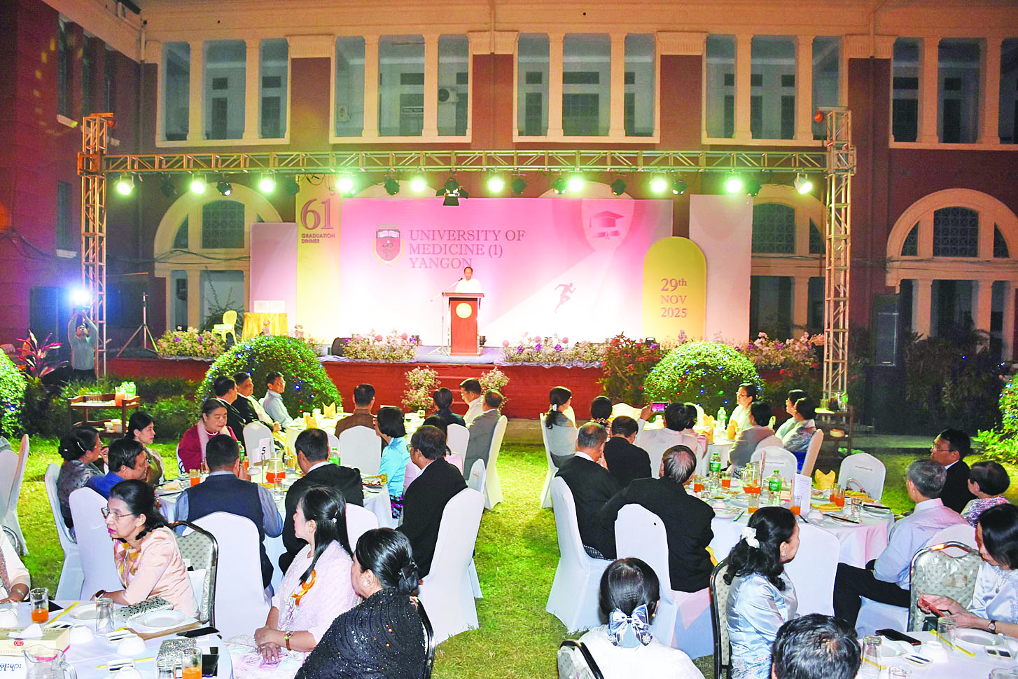 ကျန်းမာရေးဝန်ကြီးဌာန၊ ကျန်းမာရေးလူ့စွမ်းအားအရင်းအမြစ်ဦးစီးဌာန၊ ဆေးတက္ကသိုလ် (၁) ရန်ကုန် (၆၁) ကြိမ်မြောက် ဘွဲ့နှင်းသဘင်ဂုဏ်ပြုညစာစားပွဲအခမ်းအနားကို ယမန်နေ့ ညနေ ၆ နာရီက ဆေးတက္ကသိုလ် (၁) ရန်ကုန်လမ်းမတော်မြက်ခင်းပြင်၌ ကျင်းပသည်။