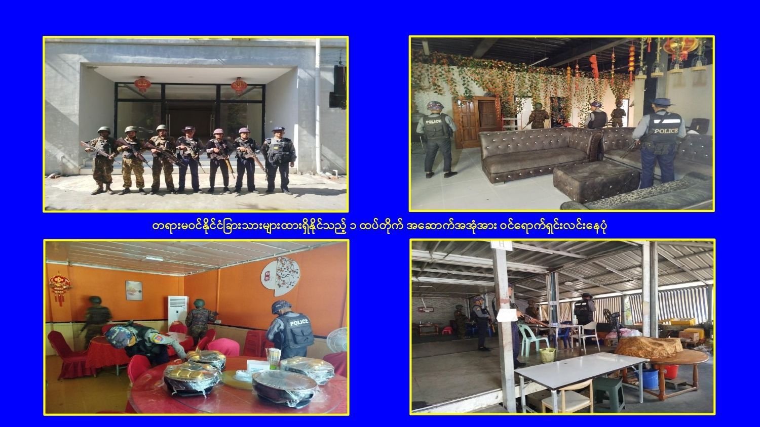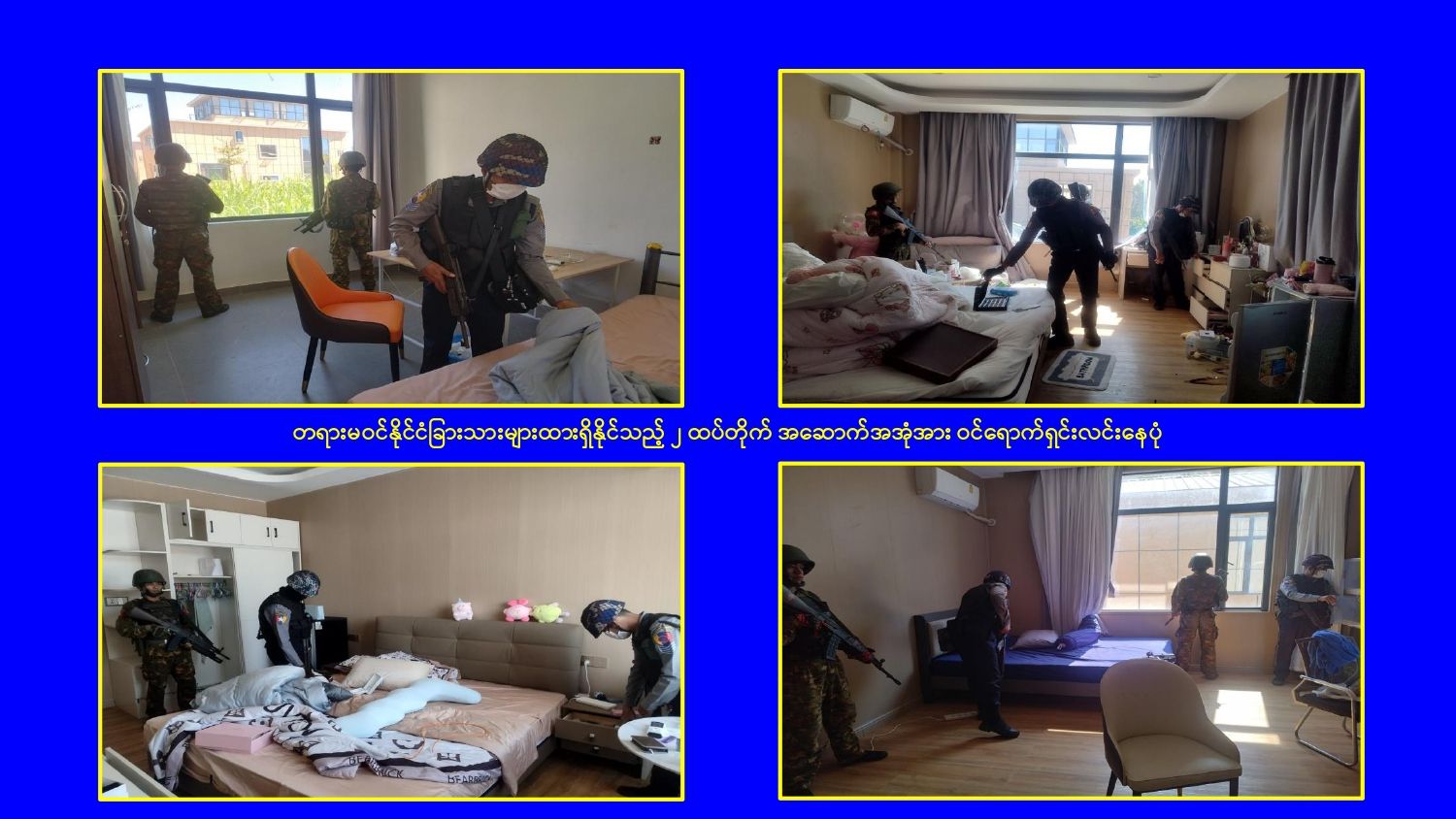ထို့ပြင် ရွှေကုက္ကိုလ်နယ်မြေအတွင်း အွန်လိုင်းလိမ်လည်မှုများလုပ်ဆောင်ရာတွင် အသုံးပြုခဲ့သည့် အဆောက်အအုံများအား နိုဝင်ဘာ ၁၈ ရက်မှ စတင်စစ်ဆေးခဲ့ရာ ယနေ့အထိ တရားမဝင်အဆောက်အအုံ ၁၄၀ လုံးကို စစ်ဆေးတွေ့ရှိရပြီး အဆိုပါ အဆောက်အအုံများကို ပြန်လည်အသုံးပြုမှုမရှိစေရေးအတွက် သိမ်းဆည်းချိပ်ပိတ်ခြင်းများကို ဆက်လက်ဆောင်ရွက်လျက်ရှိရာ ယနေ့အတွင် တရားမဝင်အဆောက်အအုံ ၁၃ လုံးကို ထပ်မံချိပ်ပိတ်သိမ်းဆည်းနိုင်ခဲ့ပြီး တရားမဝင်အဆောက်အအုံ စုစုပေါင်း ၁၃၂ လုံး ချိပ်ပိတ်သိမ်း ဆည်းပြီးဖြစ်ကြောင်း သိရှိရသည်။