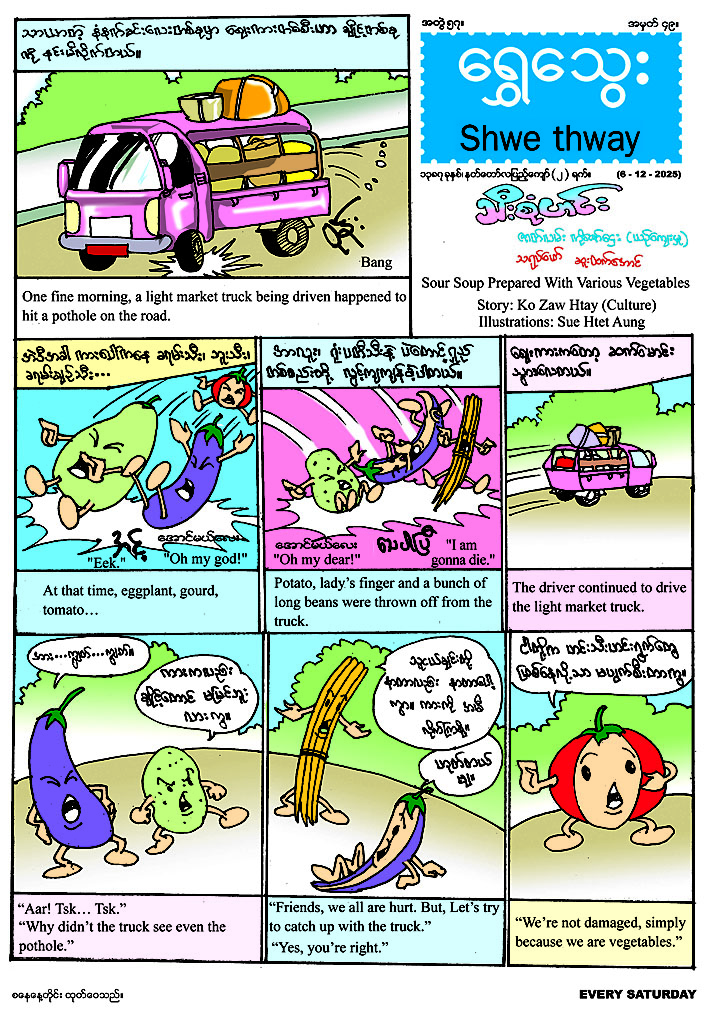 ၆ - ၁၂ - ၂၀၂၅ ရက်(စနေနေ့)တွင် ထွက်ရှိမည့် ရွှေသွေးဂျာနယ်အတွဲ (၅၇)၊ အမှတ် (၄၉) တွင် မိမိတို့ နွမ်းရိပျက်စီးသွားမည့်အစား လူသားတို့အတွက် အာဟာရရှိသော ဟင်းတစ်ခွက်ဖြစ်လိုသော စိတ်ကောင်းစေတနာရှိသည့် အသီးအနှံများအကြောင်းကို သရုပ်ဖော်ထားသည့် “သီးစုံဟင်း” မျက်နှာဖုံး ကာတွန်း၊ လမ်းလျှောက်ခြင်းသည် ငွေကုန်ကြေးကျသက်သာရုံသာမက ကျန်းမာရေးအတွက်များစွာ အထောက်အကူဖြစ်စေကြောင်းကို ဗဟုသုတရဖွယ်ရေးသားထားသည့် “လမ်းလျှောက်ခြင်း” သုတဆောင်းပါးကဏ္ဍ၊ ကလေးတို့ပေးပို့သော ပန်းချီလက်ရာများကို ဖော်ပြထားသည့် “ရွှေသွေးတို့လက်ရာ”ကဏ္ဍ၊ ကျောင်း၌ အခြားသူများနှင့် လိုက်လျောညီထွေစွာ မပေါင်းသင်းတတ်၍ သူငယ်ချင်းမရှိသော သားကို မိခင်ဖြစ်သူက သူငယ်ချင်းများ၏ တန်ဖိုးရှိပုံအကြောင်းကို ပြောဆိုဆုံးမထားသည်ကို သရုပ်ဖော် ထားသည့် “သူငယ်ချင်းအလိုရှိသည်” နှစ်မျက်နှာ ကာတွန်း၊ လိမ္မာယဉ်ကျေးပြီး ဖခင်၏ဆုံးမစကားအတိုင်း အလုပ်ကိုရိုးရိုးသားသား ကြိုးကြိုးစားစားလုပ်ကိုင်ခဲ့သော မောင်မြင့်အကြောင်းကို ရေးသားထားသည့် “အလုပ်ကြိုးစားတဲ့ သူဌေးသား” ပုံပြင်ကဏ္ဍ၊ မိခင်၏ မေတ္တာစေတနာကို နားလည်သွားခဲ့သော ကျောင်းသားလေးအကြောင်းကို ရေးသားထားသည့် “အစွန်းအထင်းကင်းသည်” ဝတ္ထုကဏ္ဍ၊ သူတစ်ပါးကို မြွေရုပ်နှင့် ခြောက်လှန့်တတ်သောကြောင့် ရေခဲမုန့်နှင့် လွဲခဲ့ရသော ချက်စူအကြောင်းကို သရုပ်ဖော်ထားသည့် “ချက်စူပါဝင်သော မစားရထိုက်သူ” နှစ်မျက်နှာကာတွန်း၊ မိမိထင်မြင်ယူဆသည့် အတိုင်း တွေးတောပူပန်တတ်သော ဖြိုးရဲအကြောင်းကို သရုပ်ဖော်ထားသည့် “ဖြိုးရဲ - အာနိုးနဲ့ ဝတုတ်” နှစ်မျက်နှာကာတွန်း၊ အီဒီယမ်များအပါအဝင် Two-word Verb ဟုခေါ်သော Phrasal Verb များ၏ အသုံးများနှင့် ပတ်သက်သည့် အင်္ဂလိပ်စကားပြောများကို လေ့လာမှတ်သားနိုင်မည့် “အခြေခံလိုအပ်သည့် အီဒီယမ်” အင်္ဂလိပ်စာကဏ္ဍ၊ ဉာဏ်စမ်းကဏ္ဍနှင့် ကဗျာကဏ္ဍတို့အပါအဝင် ကဏ္ဍစုံစုံလင်လင်ဖြင့် ထွက်ရှိပြီဖြစ်ရာ တစ်စောင်လျှင် ငွေကျပ် ၄၀၀ ဖြင့် စာပေဗိမာန် စာအုပ်အရောင်းဆိုင်များတွင် ဝယ်ယူနိုင်ကြောင်း သိရသည်။