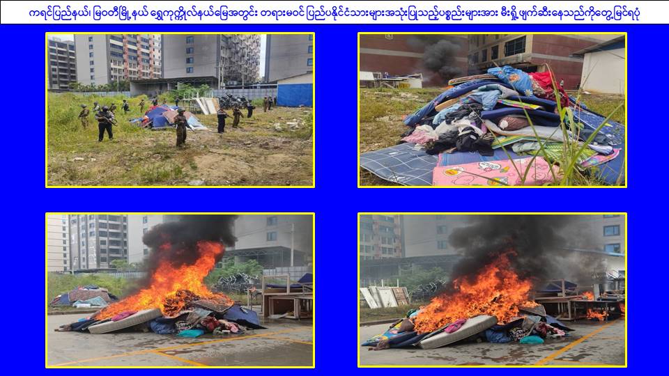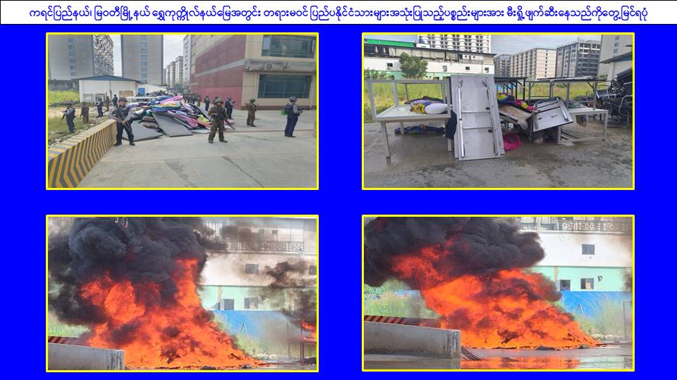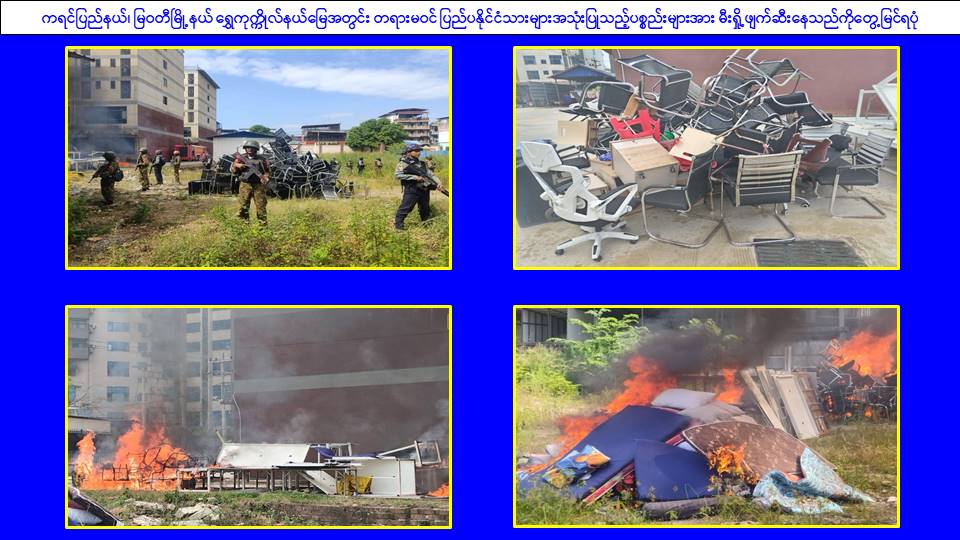 ၎င်းအပြင် မြဝတီမြို့နယ်အတွင်းရှိ KK Park နယ်မြေနှင့် ရွှေကုက္ကိုလ်နယ်မြေတို့၌ အွန်လိုင်းလိမ်လည်လောင်းကစားမှုကျူးလွန်ရာတွင် အသုံးပြုသည့်ပစ္စည်းများအား ထပ်မံ၍ အသုံးပြုနိုင်ခြင်းမရှိစေရန်အတွက် ယနေ့တွင်လည်း စနစ်တကျမီးရှို့ဖျက်ဆီးခဲ့ကြောင်း သိရှိရသည်။