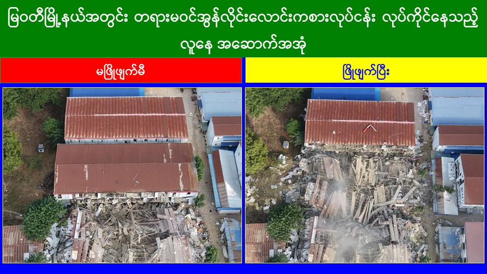 အွန်လိုင်းလောင်းကစားမှုများ၊ အွန်လိုင်းလိမ်လည်မှုများအပါအဝင် ဒုစရိုက်မှုများ ကျူးလွန်ခဲ့ကြသူများအား အင်တိုက်အားတိုက်ဖြင့် ကျယ်ကျယ်ပြန့်ပြန့်ရှာဖွေဖမ်းဆီးအရေးယူခြင်းများ ဆောင်ရွက်လျက်ရှိရာ ယနေ့တွင် မြဝတီမြို့ရှိ လုံခြုံရေးပူးပေါင်းအဖွဲ့များက သတင်းအရမြဝတီမြို့ဝန်းကျင်တွင် ရှောင်တခင်စစ်ဆေးခြင်းများ ဆောင်ရွက်ခဲ့ရာ အမှတ် (၂) ရပ်ကွက်တွင် တရားမဝင်အွန်လိုင်းလောင်းကစားမှုများ၊ အွန်လိုင်းလိမ်လည်မှုများ ကျူးလွန်လျက်ရှိကြသည့် အိန္ဒိယနိုင်ငံသားအမျိုးသား ၅၈ ဦးနှင့် အမျိုးသမီး ၁၇ ဦး၊ စုစုပေါင်း ၇၅ ဦးတို့အား ဖော်ထုတ်ဖမ်းဆီးရမိခဲ့ကာ အဆိုပါဖမ်းဆီးရမိသူများအား လိုအပ်သောကိုယ်ရေးအချက်အလက်များ စစ်ဆေးရန်အတွက် မြဝတီမြို့၊ အမှတ် (၄) ရပ်ကွက်၊ လှိုင်ထိပ်ခေါင်တင်လမ်းရှိ မြို့မအားကစားကွင်း၌ ကောင်းမွန်စွာထိန်းသိမ်းစောင့်ရှောက်ထားရှိလျက်ရှိသည်။ ထို့ပြင် မြဝတီမြို့၊ အမှတ် (၃) ရပ်ကွက်အတွင်းရှိ အွန်လိုင်းလိမ်လည်မှုနှင့် လောင်းကစားလုပ်ငန်းများ လုပ်ကိုင်ရာတွင် အသုံးပြုနေထိုင်လုပ်ကိုင်ခဲ့ကြသည့် ၃ ထပ် အဆောက်အအုံ ၅ လုံး၊ ၁ ထပ် အဆောက်အအုံ ၃ လုံး၊ စုစုပေါင်း ၈ လုံးတို့အား စစ်ဆေးတွေ့ရှိခဲ့ရပြီး ၎င်းတို့အား ပြန်လည်အသုံးချမှုမရှိစေရေးအတွက် ဖြိုချဖျက်ဆီးခြင်းများကို ဆောင်ရွက်ခဲ့ရာ ယနေ့တွင်လည်း ၃ ထပ်အဆောက်အအုံ ၁ လုံးကို ထပ်မံဖြိုချဖျက်ဆီးနိုင်ခဲ့သဖြင့် စုစုပေါင်း ၂ လုံး ဖြိုချဖျက်ဆီးပြီးဖြစ်ကြောင်း သိရှိရသည်။