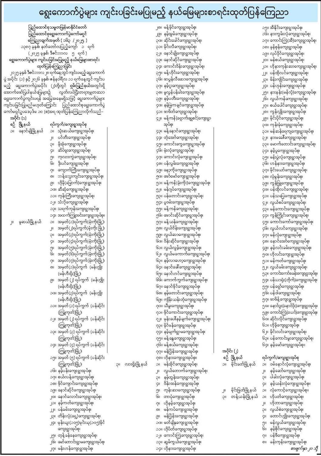 ရွေးကောက်ပွဲများ ကျင်းပခြင်းမပြုမည့် နယ်မြေများ စာရင်းထုတ်ပြန်ကြေညာ