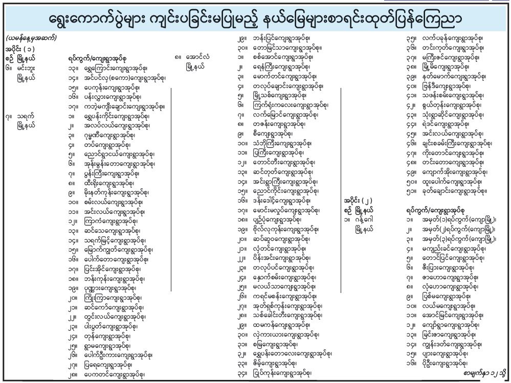 ရွေးကောက်ပွဲများ ကျင်းပခြင်းမပြုမည့် နယ်မြေများစာရင်း ထုတ်ပြန်ကြေညာ