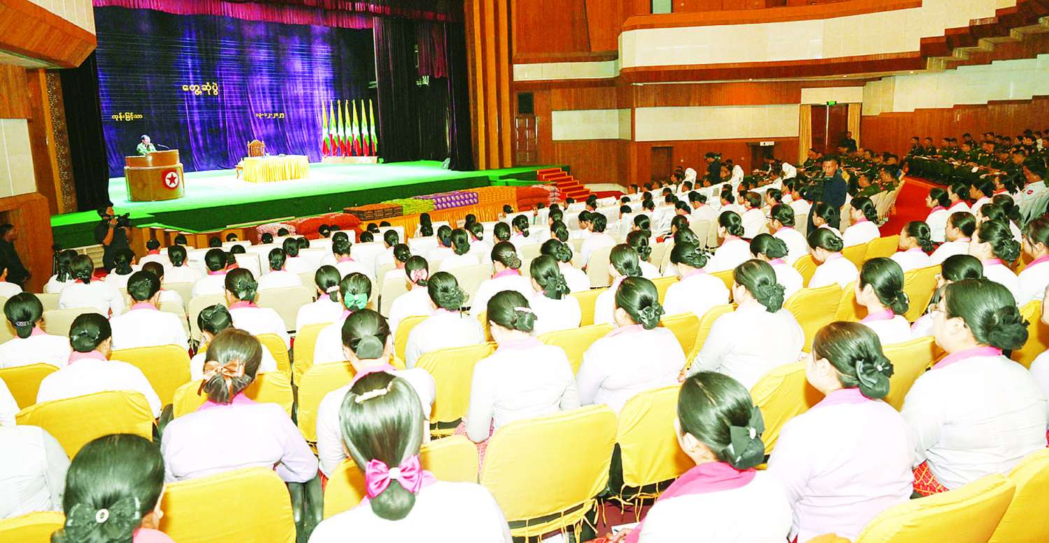 ဒီမိုကရေစီစနစ်တွင် ရွေးကောက်ပွဲသည် အရေးအကြီးဆုံးဖြစ်သည့်အတွက် မိမိတို့အနေဖြင့် ပါတီစုံဒီမိုကရေစီရွေးကောက်ပွဲတစ်ရပ်ကို အောင်မြင်စွာကျင်းပပေးနိုင်ရေးအတွက် ၂၀၂၄ ခုနှစ် လူဦးရေနှင့် အိမ်အကြောင်းအရာသန်းခေါင်စာရင်းကောက်ယူခြင်းလုပ်ငန်းအပါအဝင် လိုအပ်သည့်ကြိုတင်ပြင်ဆင်ခြင်းများကို ဆောင်ရွက်ခဲ့ပြီးဖြစ်ကြောင်း၊ မကြာမီရက်သတ္တပတ်ကာလအတွင်း လွတ်လပ်ပြီးတရားမျှတသော ပါတီစုံဒီမိုကရေစီ အထွေထွေရွေးကောက်ပွဲ အောင်မြင်စွာကျင်းပနိုင်ရေးအတွက် အားလုံးက ဝိုင်းဝန်းဆောင်ရွက်ပေးသွားရမည်ဖြစ်ကြောင်း၊ ဆန္ဒမဲများပေးရာတွင် တိုင်းပြည်နှင့် ဒေသကောင်းကျိုးကို အမှန်တကယ်ဆောင်ရွက်နိုင်သူ၊ နိုင်ငံရေးအမြင်၊ အုပ်ချုပ်ရေးအမြင်၊ စီးပွားရေးအမြင်၊ လုံခြုံရေးနှင့် တရားဥပဒေစိုးမိုးရေးအမြင်ရှိသူ၊ လွတ်လပ်ရေးရရှိပြီးကတည်းက ယနေ့ထက်တိုင် ခိုင်မာစွာတည်ရှိနေသည့် တပ်မတော်နှင့် စိတ်တူကိုယ်တူ လက်တွဲဆောင်ရွက်နိုင်သည့်သူ၊ ဒို့တာဝန်အရေးသုံးပါးကို လိုက်နာစောင့်ထိန်းနိုင်သည့်သူ၊ ဥပဒေနှင့်ပတ်သက်၍ အသိပညာရှိသူများကို ရွေးချယ်၍ဆန္ဒမဲများ ပေးနိုင်ရန်လိုကြောင်း၊ တပ်မတော်သည် နိုင်ငံတော်နှင့် အမျိုးသားရေးကို သစ္စာရှိစွာဖြင့် ခေတ်အဆက်ဆက်ဆောင်ရွက်နေသည့် အဖွဲ့အစည်းတစ်ရပ်ဖြစ်ကြောင်း၊ လွှတ်တော်ဆိုသည်မှာ ဥပဒေပြုရေးကို ဆောင်ရွက်ခြင်းဖြစ်ပြီး နိုင်ငံတော်ကို အုပ်ချုပ်ရေး၊ ဥပဒေပြုရေးနှင့် တရားစီရင်ရေးစသည့် မဏ္ဍိုင်ကြီးသုံးခု အပြန်အလှန်ထိန်းကျောင်းရမည်ဟု ဖွဲ့စည်းပုံအခြေခံဥပဒေ (၂၀၀၈ ခုနှစ်) တွင် ပြဋ္ဌာန်းထားပြီး ဖြစ်ကြောင်း၊ နိုင်ငံတော်၏ အကျိုးစီးပွားကိုထိခိုက်စေနိုင်သည့် ဥပဒေများကို ဥပဒေနှင့်အညီ ပြင်ဆင်ခြင်းနှင့် ပယ်ဖျက်ခြင်းများကိုလည်း ဆောင်ရွက်နိုင်ရန်လိုကြောင်း၊ ဥပဒေပြုရေးလုပ်ငန်းများကို ဆောင်ရွက်ရာတွင် ဥပဒေပညာရပ်များကို သိရှိနေရန်လိုကြောင်း၊ သို့ဖြစ်၍ နိုင်ငံ၏ဥပဒေပြုရေးဖြစ်သည့် လွှတ်တော်တွင် ကိုယ်စားလှယ်များအဖြစ် တာဝန်ထမ်းဆောင်ကြမည့်သူများအနေဖြင့် ထိုက်သင့်သည့် အတန်းပညာရှိရန်လိုကြောင်း၊ ထို့ကြောင့် ကိုယ်စားလှယ်လောင်းများအဖြစ် ဝင်ရောက်ယှဉ်ပြိုင်မည့်သူများအနေဖြင့် အနည်းဆုံးအဆင့် တက္ကသိုလ်ဝင်တန်းတက်ရောက်ပြီးဆုံးသူများဖြစ်ရန် သတ်မှတ်ထားရှိခြင်းဖြစ်ကြောင်း၊ ဒီမိုကရေစီစနစ်ကိုကျင့်သုံးရာတွင် ဥပဒေကို မဖြစ်မနေသိရှိနေရန်လိုကြောင်း၊ KG + 12 တက်ရောက်ပြီးသူများအနေဖြင့် အခြေခံ ပညာအဆင့်သင်ကြားပြီးချိန်တွင် အနည်းဆုံးအသက် ၁၈ နှစ်ပြည့်သူများဖြစ်လာမည်ဖြစ်သဖြင့် ဆန္ဒမဲပေးနိုင်သည့် အသက်အရွယ်များဖြစ်ကြောင်း၊ ထို့ကြောင့် ဥပဒေအသိပညာများသိရ