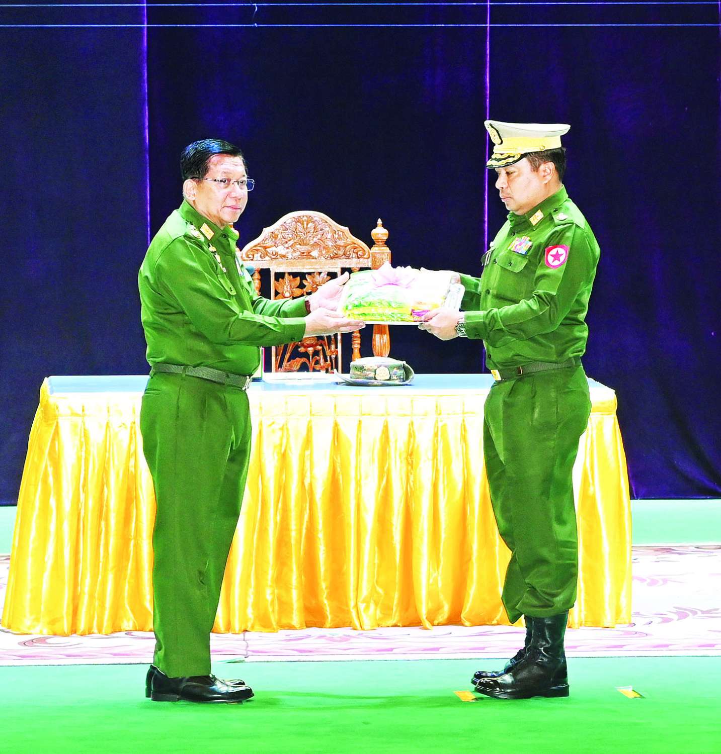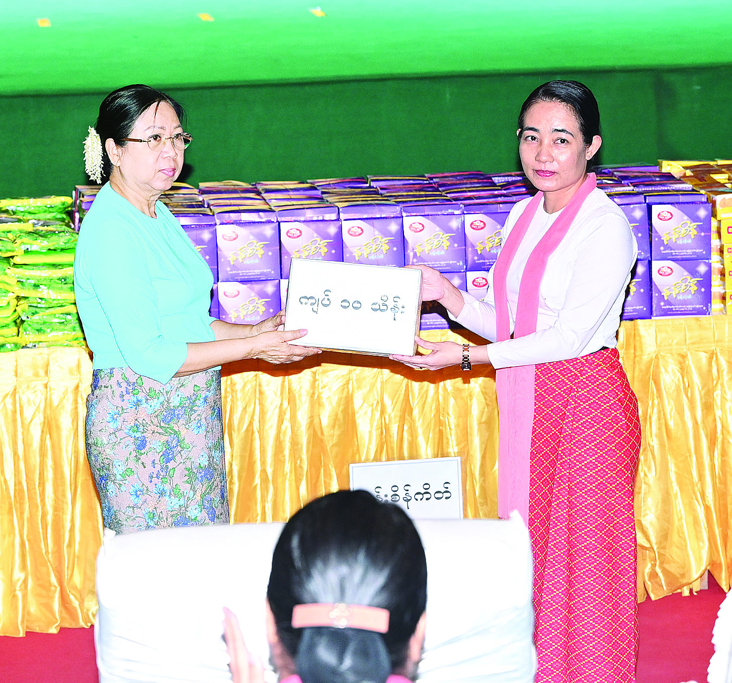ယင်းနောက် နိုင်ငံတော်လုံခြုံရေးနှင့်အေးချမ်းသာယာရေးကော်မရှင်ဥက္ကဋ္ဌ တပ်မတော်ကာကွယ်ရေးဦးစီးချုပ်က အရာရှိ၊ စစ်သည်၊ မိသားစုများအတွက် စားသောက်ဖွယ်ရာပစ္စည်းများကို ပေးအပ်ရာ တိုင်းမှူးကလည်းကောင်း၊ နိုင်ငံတော်လုံခြုံရေးနှင့်အေးချမ်းသာယာရေးကော်မရှင်ဥက္ကဋ္ဌ တပ်မတော်ကာကွယ်ရေးဦးစီးချုပ်၏ဇနီးက တပ်နယ်မိခင်နှင့် ကလေးစောင်ရှောက်ရေးအသင်းအတွက် ချီးမြှင့်ငွေများကို ပေးအပ်ရာ တိုင်းမှူး၏ ဇနီးကလည်းကောင်း အသီးသီးလက်ခံရယူသည်။
