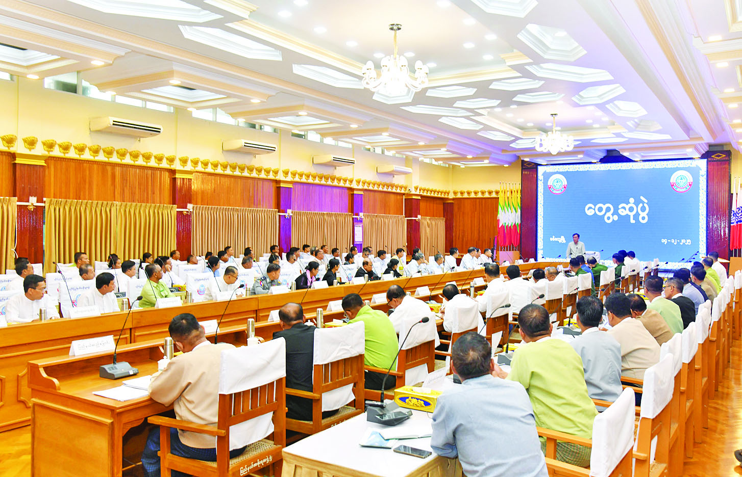 ဦးစွာ ရခိုင်ပြည်နယ်ဝန်ကြီးချုပ်က ကုန်စည်စီးဆင်းမှုနှင့် ကုန်ဈေးနှုန်းတည်ငြိမ်ရေးအတွက် ဆောင်ရွက်နေမှု၊ ဌာနဆိုင်ရာဝန်ထမ်းများ၊ အငြိမ်းစားဝန်ထမ်းများနှင့် နေရပ်စွန့်ခွာပြည်သူများအား ထောက်ပံ့ပေးနေမှု၊ စိုက်ပျိုးရေး၊ မွေးမြူရေးလုပ်ငန်းများ ဆောင်ရွက်ထားရှိမှု၊ ဆိုလာစနစ်ဖြင့် လျှပ်စစ်ဓာတ်အားရရှိရေး ဆောင်ရွက်ထားရှိမှု၊ ဒေသဖွံ့ဖြိုးတိုးတက်ရေးအတွက် ကွင်းဆင်းဆောင်ရွက်မှု၊ ဒေသခံပြည်သူ လူထုအားတိုက်ရိုက်အကျိုးပြုစေမည့် Quick Win လုပ်ငန်းများဆောင်ရွက်ထားရှိမှု၊ ပညာရေး၊ ကျန်းမာရေးနှင့် အားကစားကဏ္ဍဖွံ့ဖြိုးတိုးတက်ရေးအတွက် ဆောင်ရွက်နေမှု၊ ပါတီစုံဒီမိုကရေစီ အထွေထွေရွေးကောက်ပွဲ အောင်မြင်စွာကျင်းပနိုင်ရေးအတွက် ဆောင်ရွက်နေမှုနှင့် စစ်တွေမြို့တည် နှစ်(၂၀၀)ပြည့် အထိမ်းအမှတ်ပွဲတော်ကျင်းပနိုင်ရေး ဆောင်ရွက်ထားရှိမှုတို့နှင့်စပ်လျဉ်း၍ ရှင်းလင်းတင်ပြသည်။