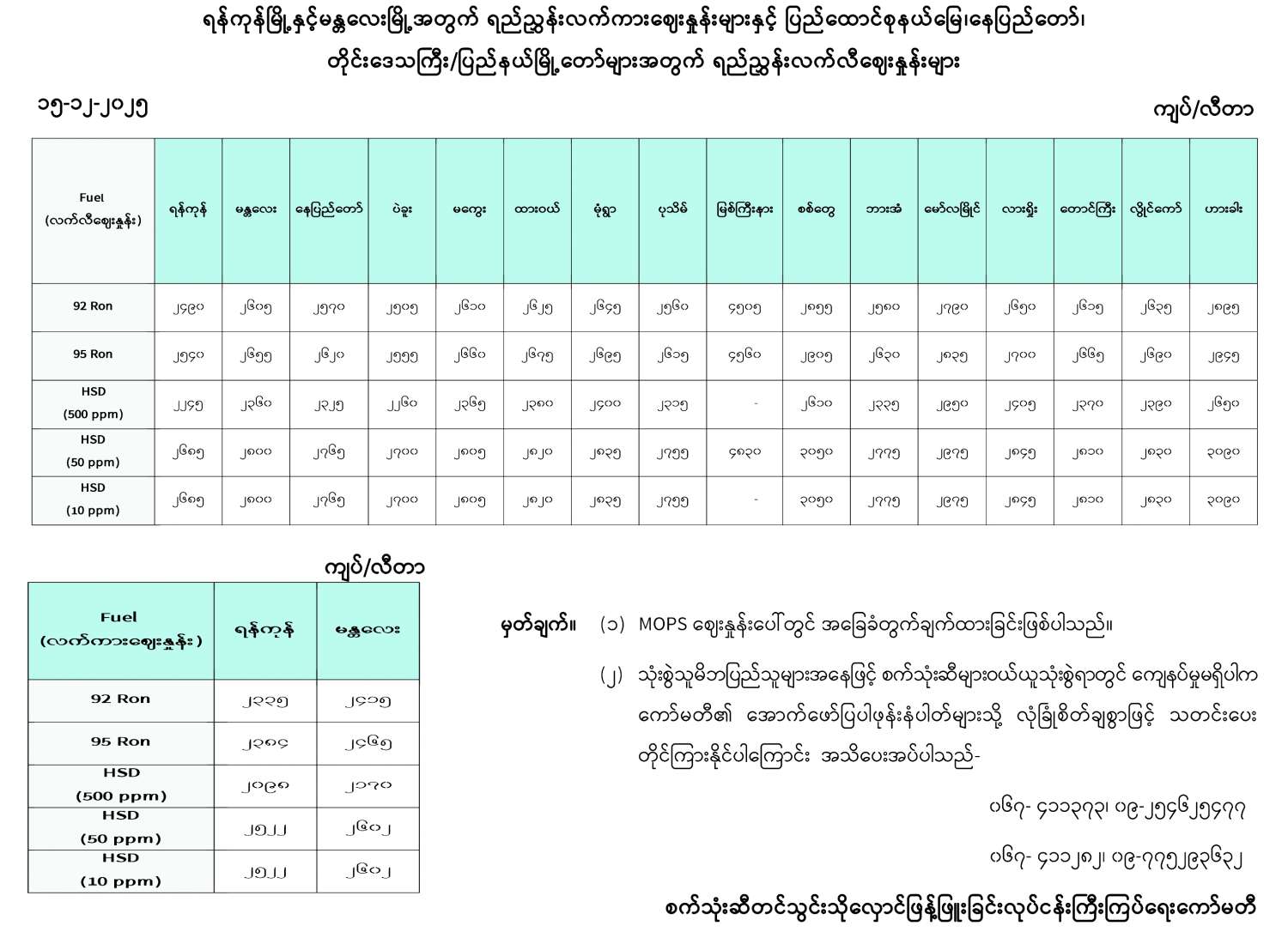 ရန်ကုန်မြို့နှင့် မန္တလေးမြို့အတွက် ရည်ညွှန်းလက်ကားဈေးနှုန်းများနှင့် ပြည်ထောင်စုနယ်မြေ နေပြည်တော်၊ တိုင်းဒေသကြီး/ပြည်နယ် မြို့တော်များအတွက် ရည်ညွှန်းလက်လီဈေးနှုန်းများ 12/15/2025