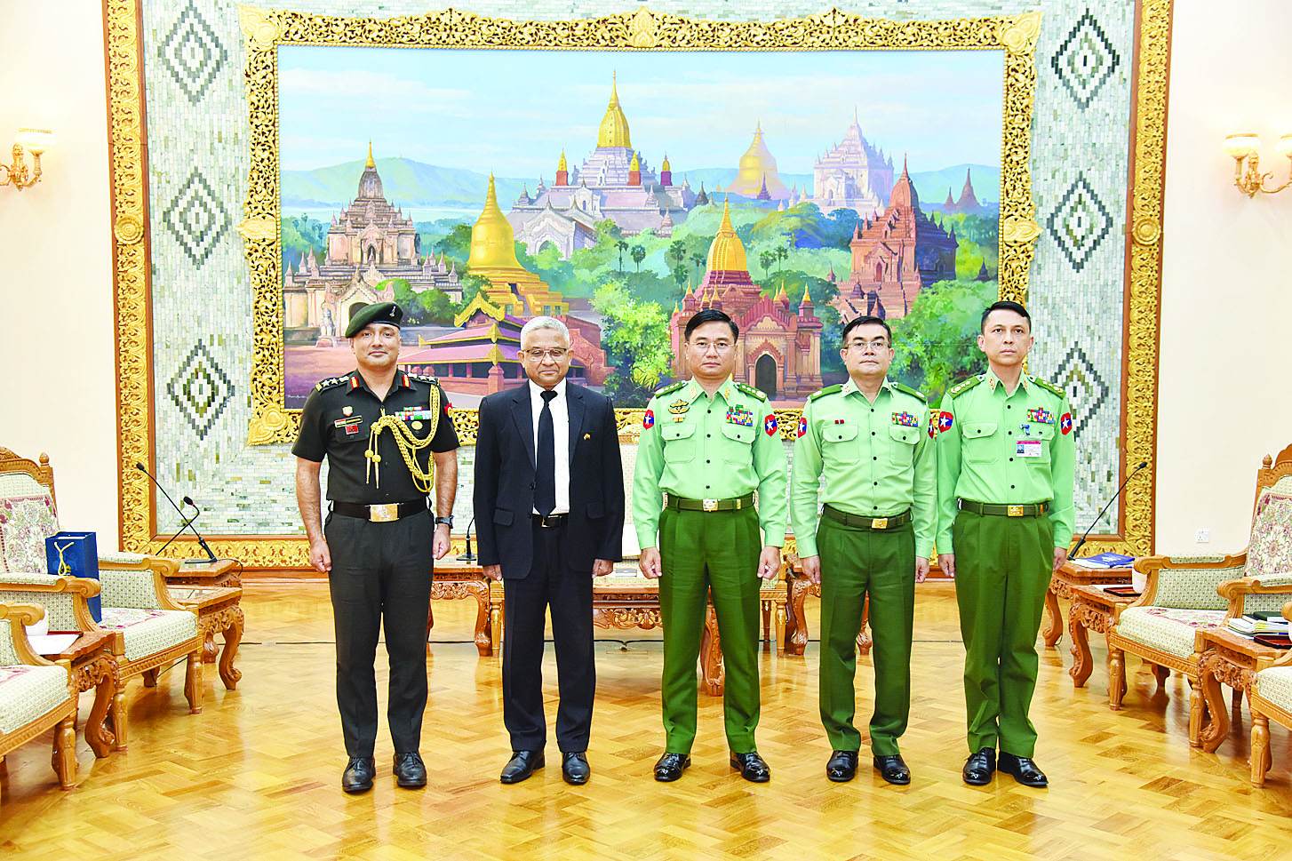 နိုင်ငံတော်လုံခြုံရေးနှင့် အေးချမ်းသာယာရေးကော်မရှင်အဖွဲ့ဝင် ညှိနှိုင်းကွပ်ကဲရေးမှူး (ကြည်း၊ ရေ၊ လေ) ဗိုလ်ချုပ်ကြီးကျော်စွာလင်းသည် မြန်မာနိုင်ငံဆိုင်ရာ အိန္ဒိယသံအမတ်ကြီး H.E. Mr. Abhay Thakur ဦးဆောင်သော ကိုယ်စားလှယ်အဖွဲ့အား ယနေ့မွန်းလွဲပိုင်းတွင် နေပြည်တော်ရှိ ဘုရင့်နောင်ရိပ်သာဧည့်ခန်းမဆောင်၌ လက်ခံတွေ့ဆုံသည်။