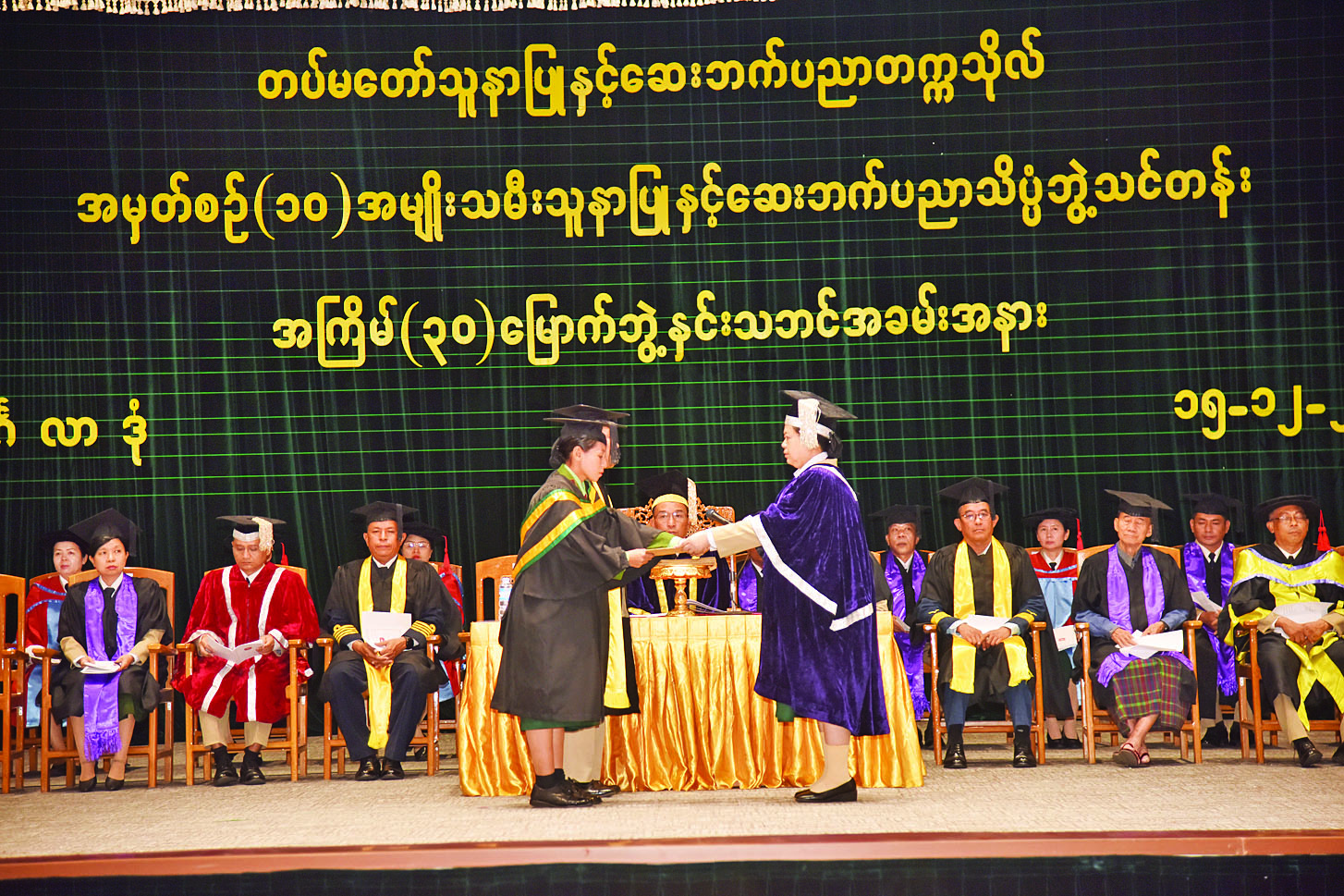 ဆက်လက်၍ ပါမောက္ခချုပ်က သူနာပြုသိပ္ပံဘွဲ့၊ ဆေးဝါးကျွမ်းကျင်မှုသိပ္ပံဘွဲ့၊ ဆေးဘက်ဆိုင်ရာ နည်းပညာဘွဲ့ (ဓာတ်ခွဲနည်းပညာ၊ ဓာတ်မှန်နှင့် ပုံရိပ်ဖော်နည်းပညာ၊ ခန္ဓာသန်စွမ်းမှုနည်းပညာ) ရရှိသူတို့ကို ဘွဲ့လက်မှတ်များ ချီးမြှင့်အပ်နှင်းသည်။ ယင်းနောက် ကျောင်းအုပ်ကြီးက ဘွဲ့ရသူများအား ဘွဲ့များနှင့်လျော်ညီသော အဆောင်အယောင်အမှတ်လက္ခဏာဖြစ်သည့် ဝတ်ရုံများကို ဝတ်ဆင်ခွင့်ပြုခဲ့ပြီး ဘွဲ့နှင်းသဘင်မှတ်တမ်းစာအုပ်တွင် လက်မှတ်ရေးထိုးသည်။